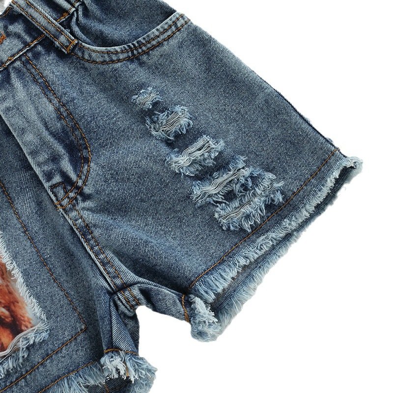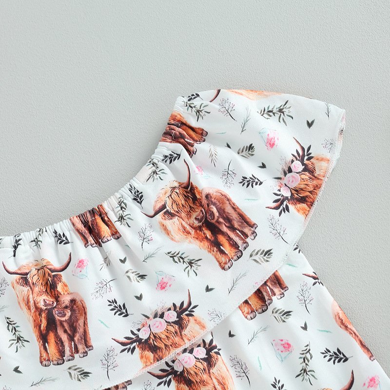 Kids Toddler Girls Fashion Casual Cow Print Sleeveless Off Shoulder TOP Denim Shorts Set
