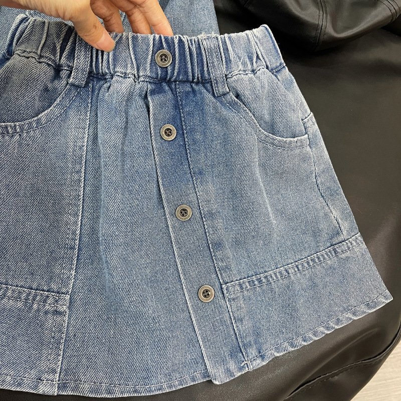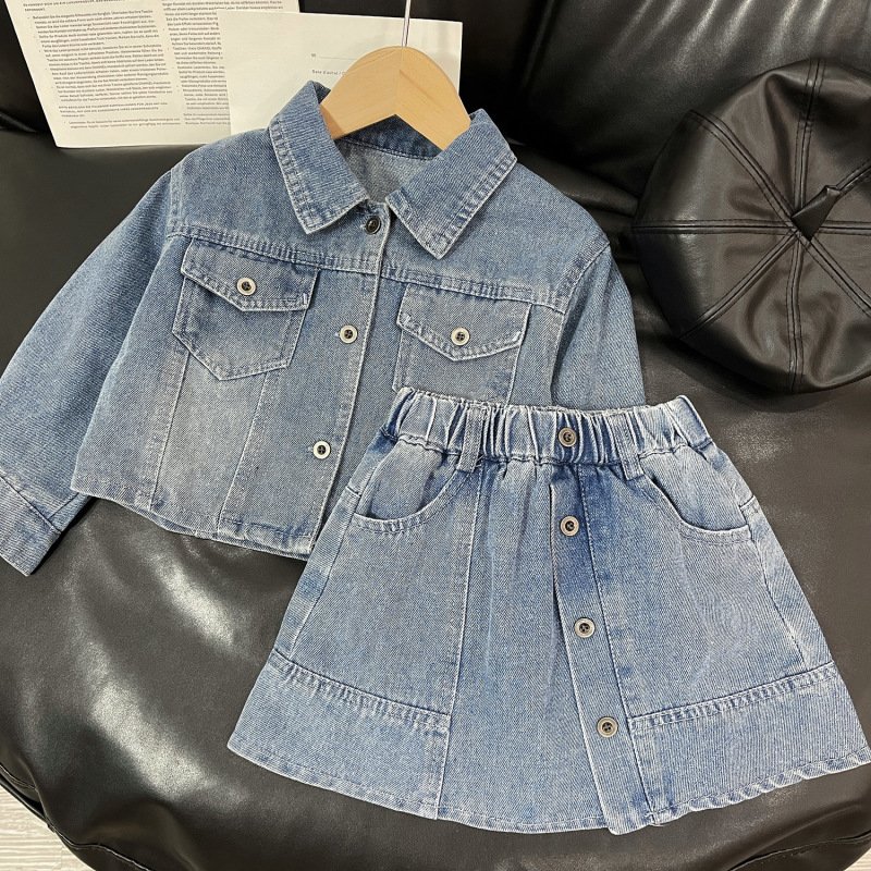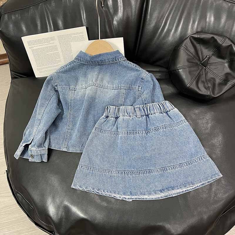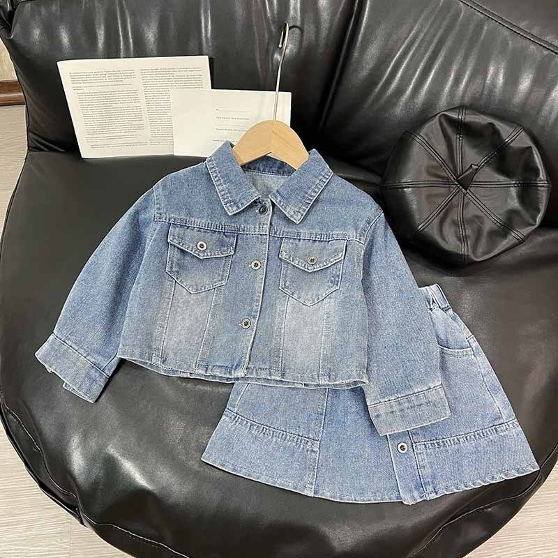 Kids Toddler Girls Fashion Casual Denim Long Sleeve Lapel Coat Skirt Set