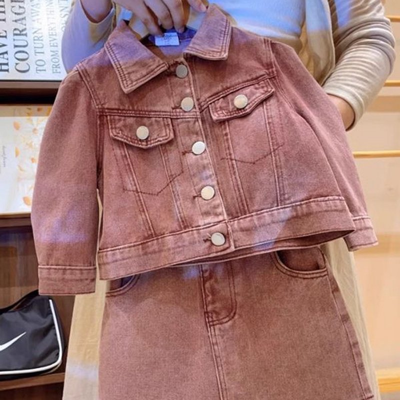 Kids Toddler Girls Fashion Casual Multicolor Long Sleeve Lapel Denim Jacket Skirt Set