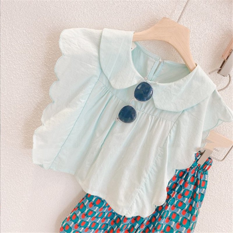 Kids Toddler Girls Fashion Casual Sleeveless Lapel T-Shirt Print Wide Leg Trousers Set
