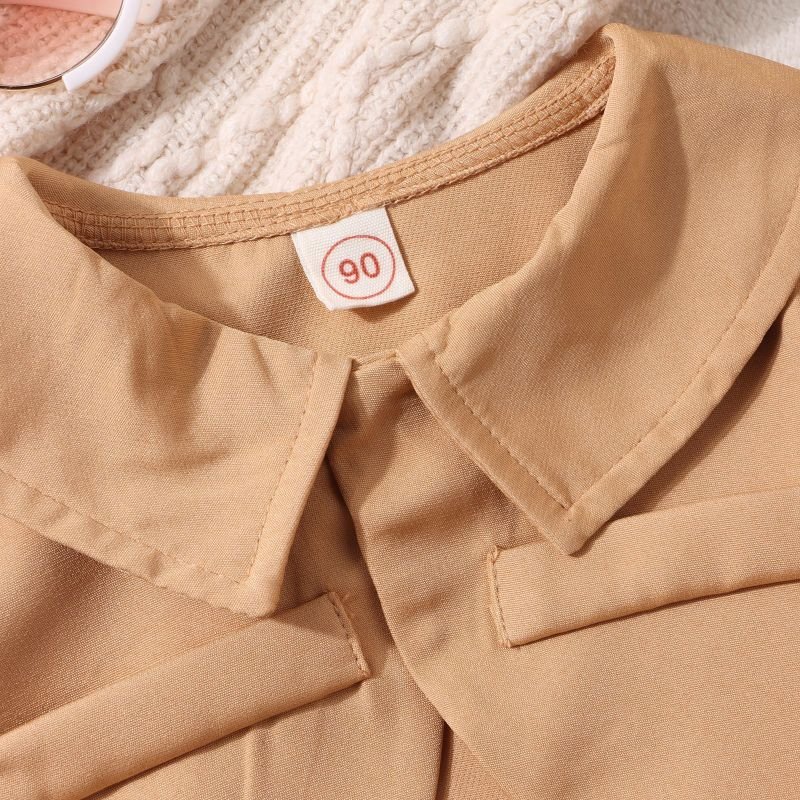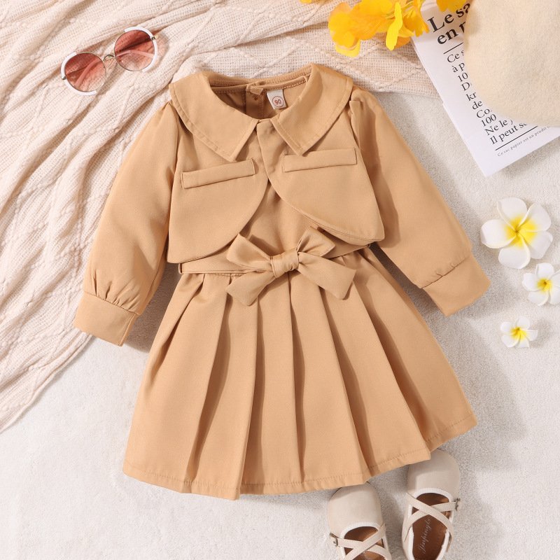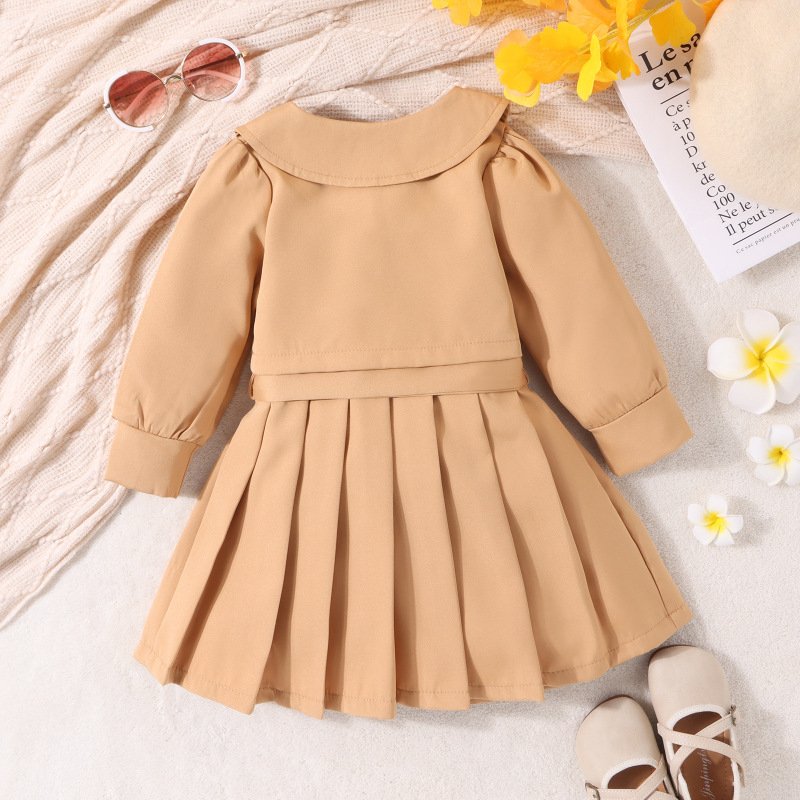 Kids Toddler Girls Fashion Casual Solid Color Sleeveless V Neck Pleated Dress Long Sleeve Lapel Coat Sets