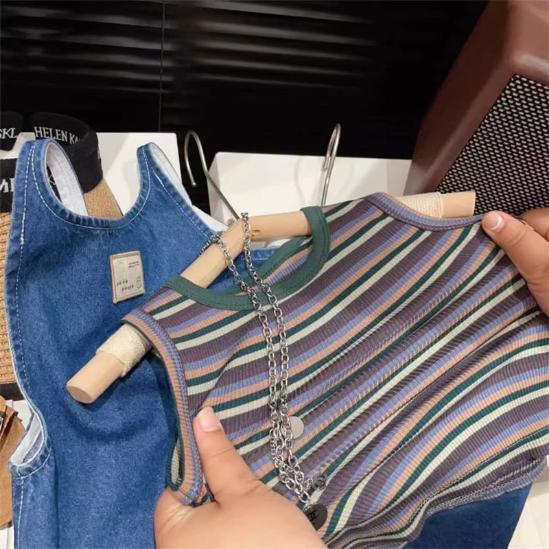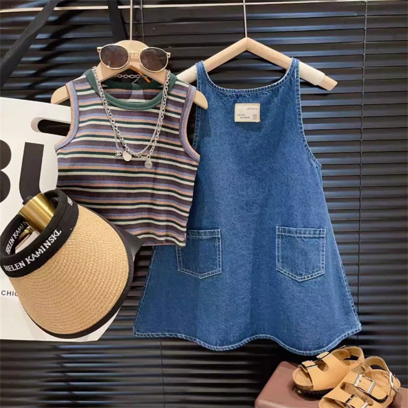 Kids Toddler Girls Fashion Casual Stripe Tank Top Denim Dress Set