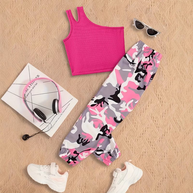 Kids Toddler Girls Fashion Casual Tank Top Camouflage Pants Sets