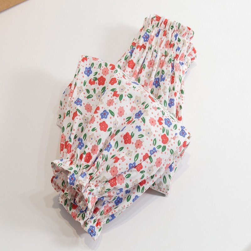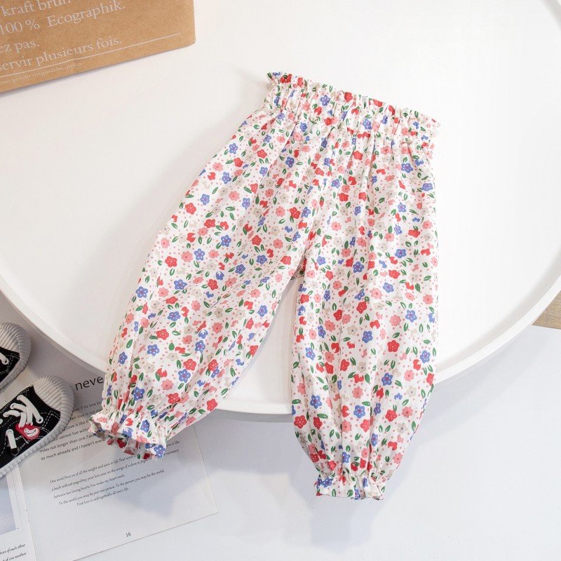 Kids Toddler Girls Fashion Cotton Thin Loose Tiny Flower Long Pants