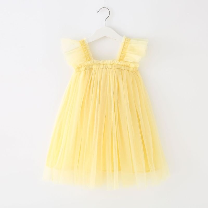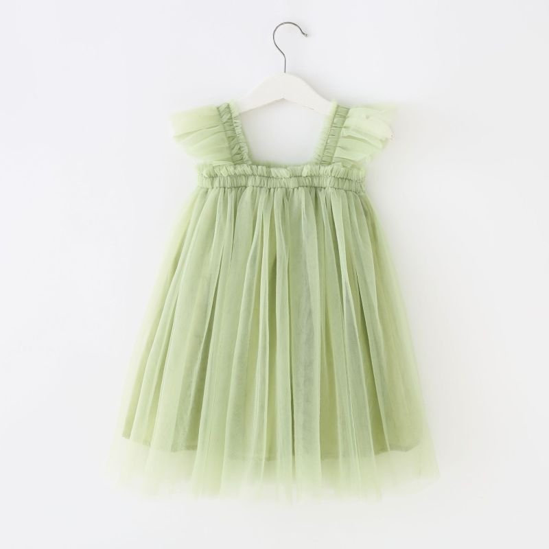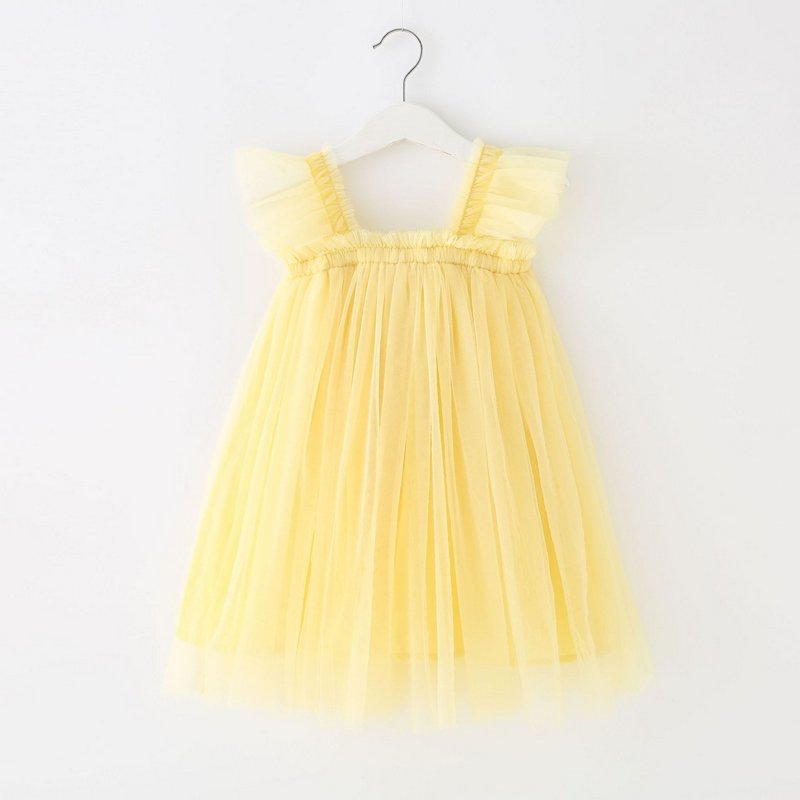 Kids Toddler Girls Fashion Flying Sleeve Solid Mesh Dress Slip Dress
