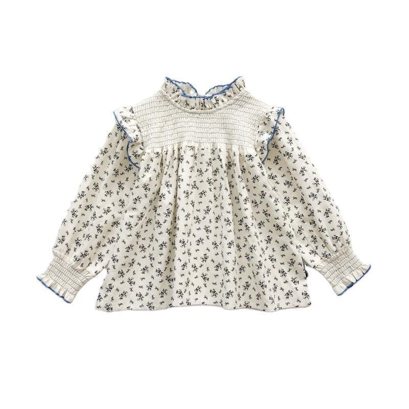 Kids Toddler Girls Fashion Lace Collar Tiny Flower Long Sleeve Top
