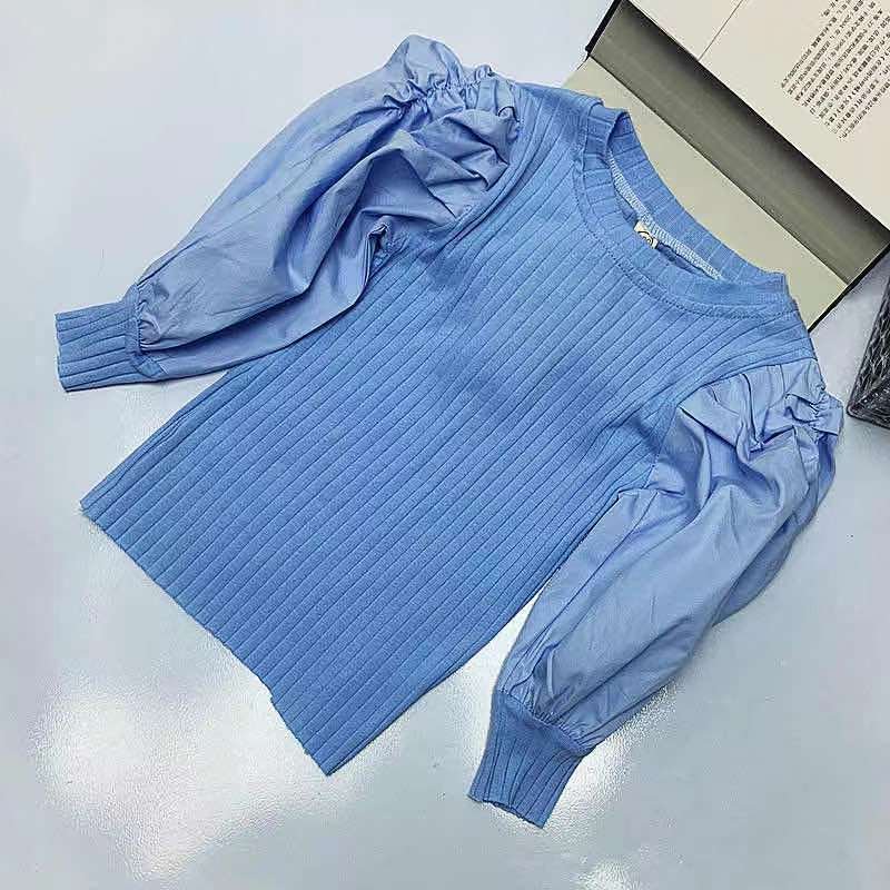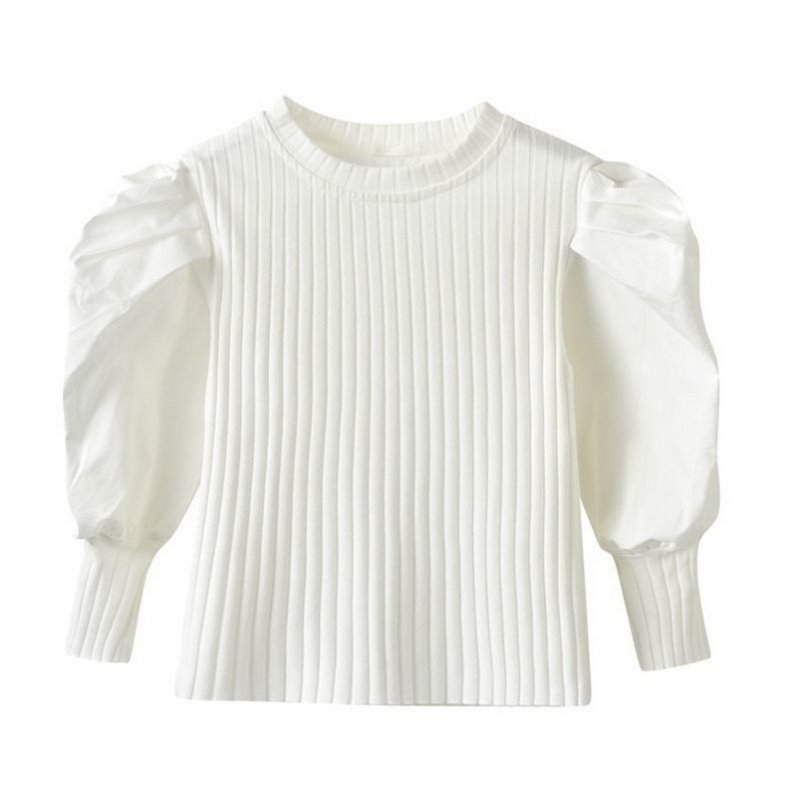 Kids Toddler Girls Fashion Puff Sleeve Fall Long Sleeve White Knit Sweater