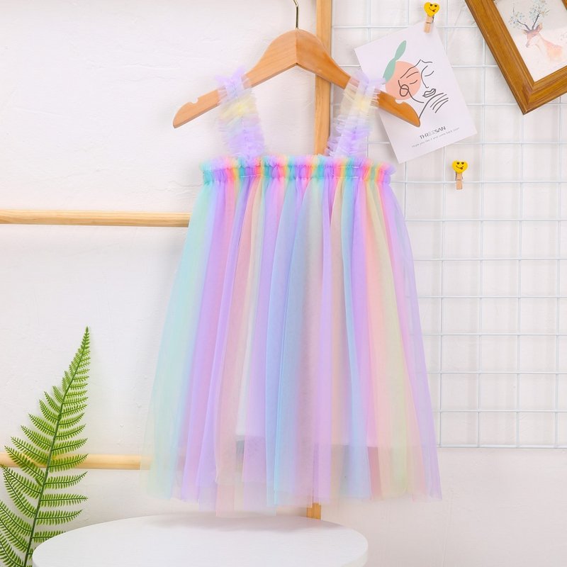 Kids Toddler Girls Fashion Rainbow Sling Mesh Dress