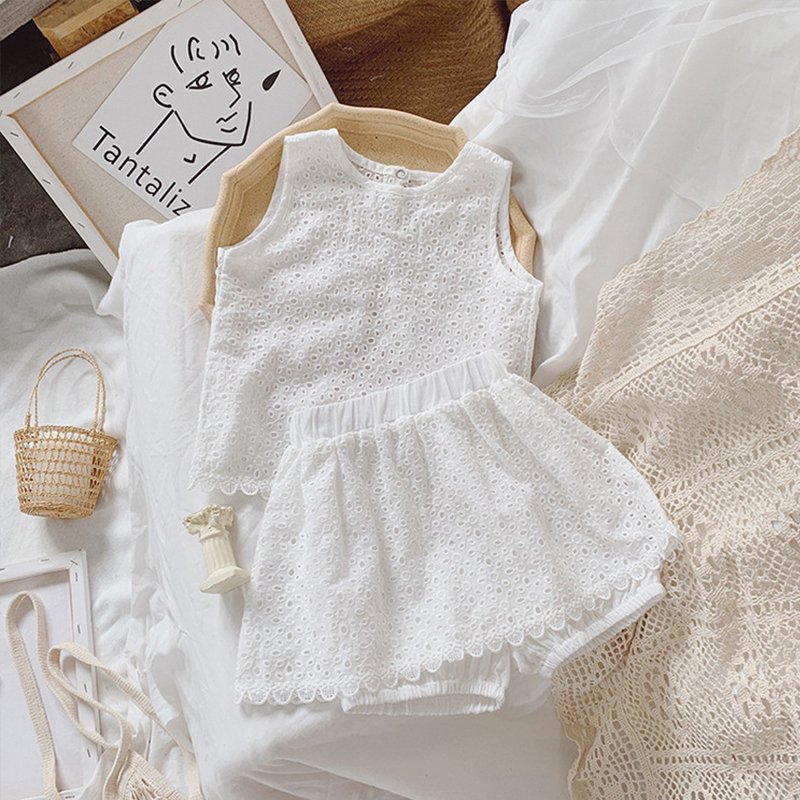 Kids Toddler Girls Fashion Sweet And Cute Vest Shorts Hollow Solid Color Lace Suit