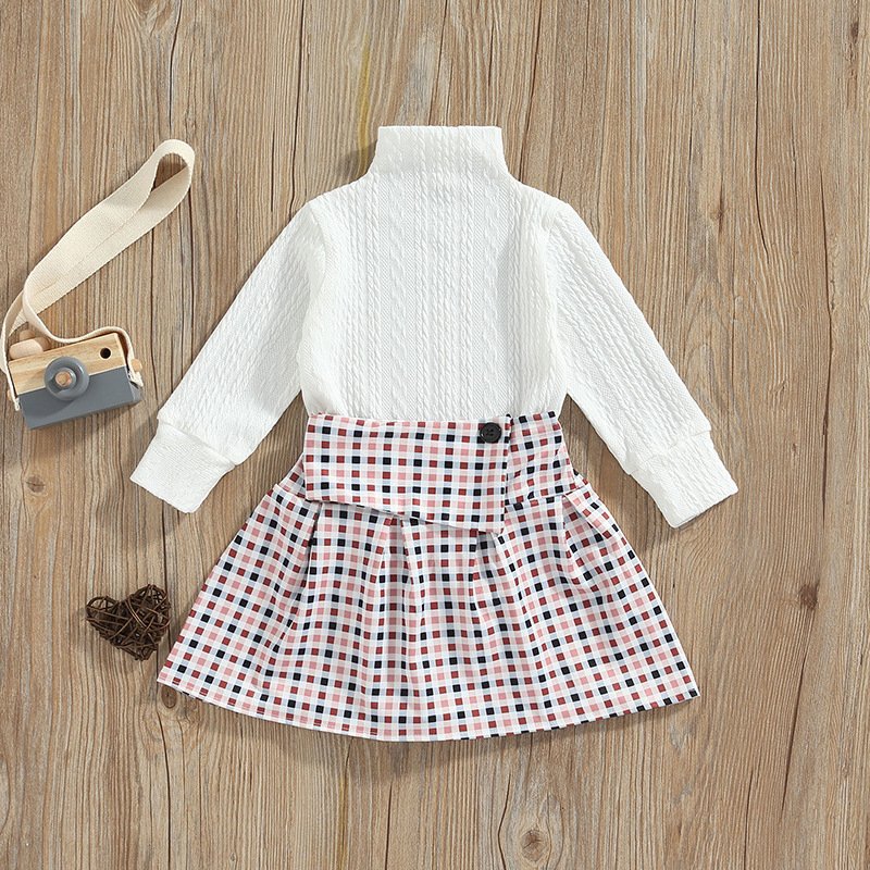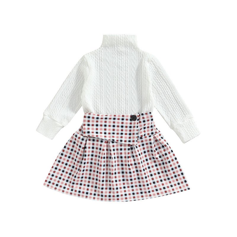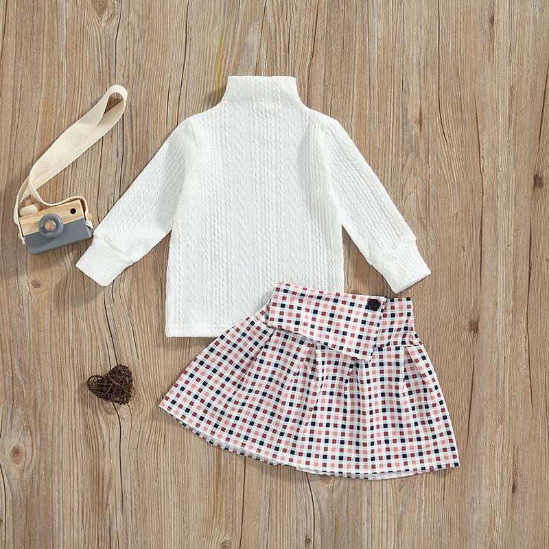 Kids Toddler Girls Fashion Turtleneck Top Plaid Skirt Two Piece Set