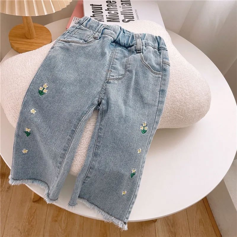 Kids Toddler Girls Floral Embroidered Straight Jeans