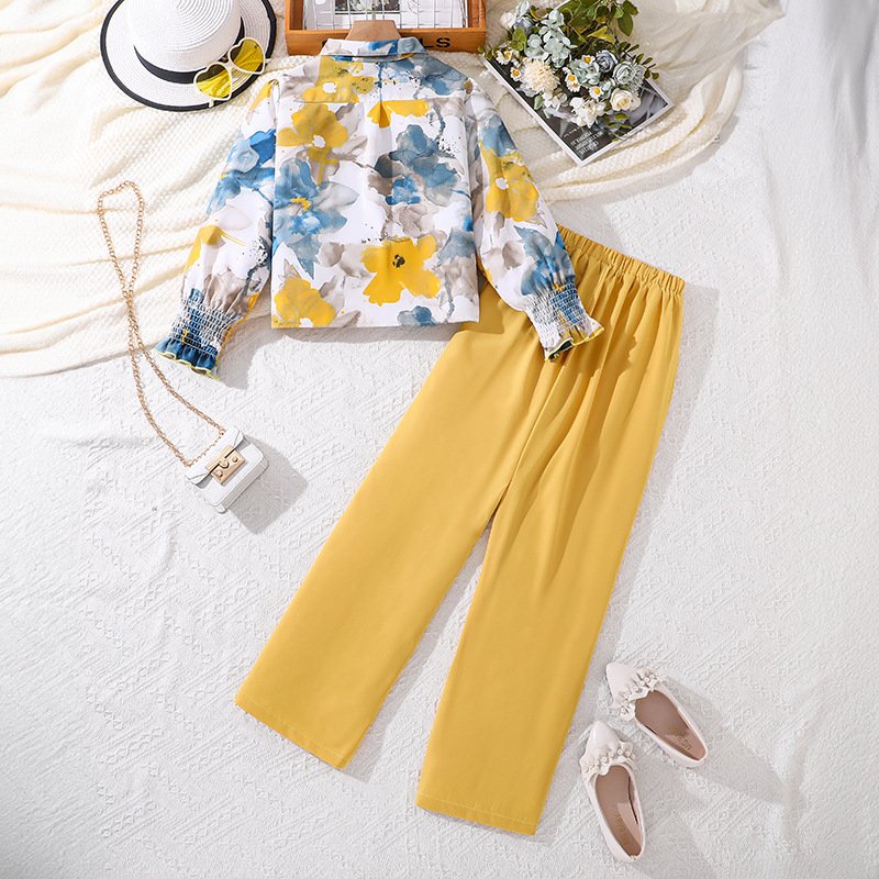 Kids Toddler Girls Spring Autumn Casual Cute Floral Long Sleeve Blouses Trousers Set