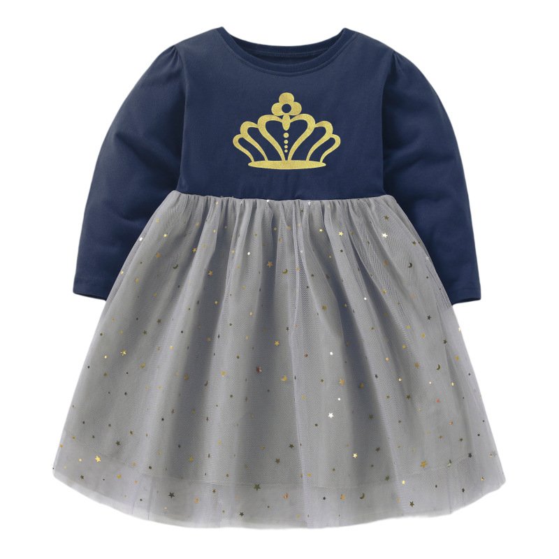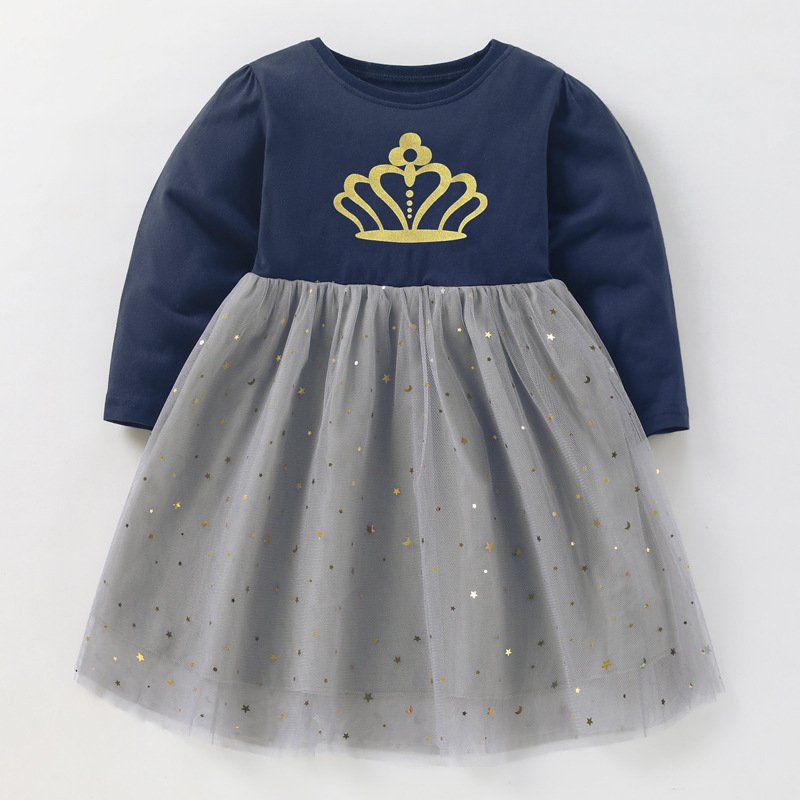 Kids Toddler Girls Spring Autumn Fashion Casual Cute Cartoon Pattern Round Neck Long Sleeve Mesh Dress
