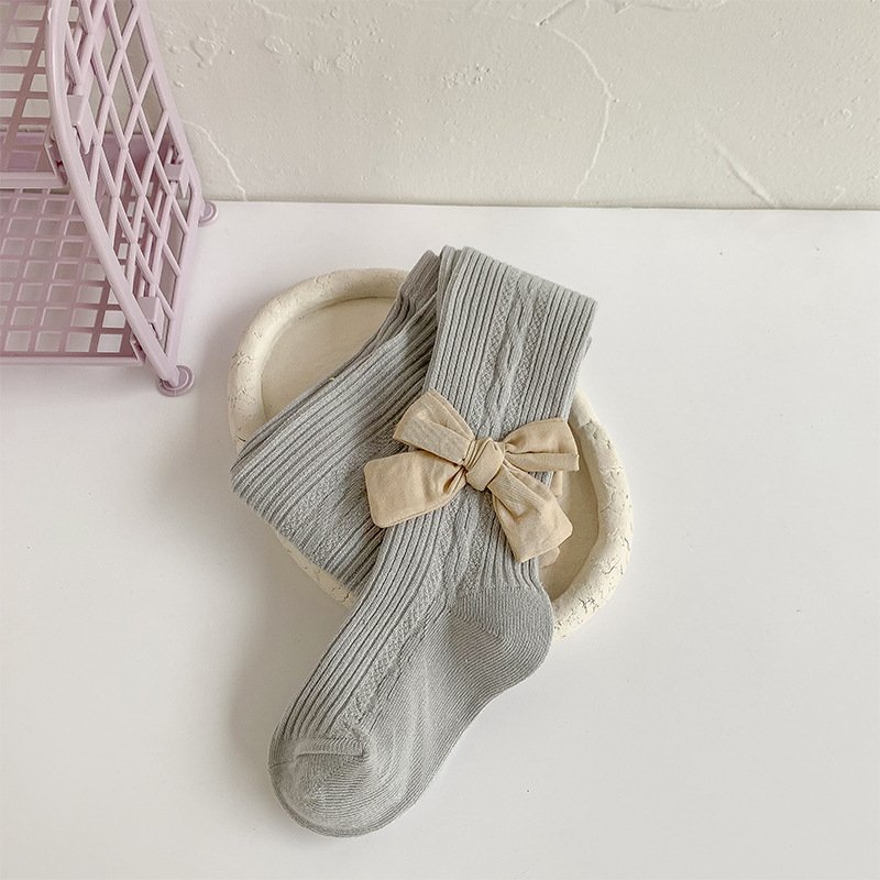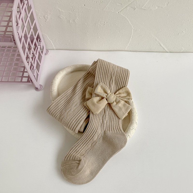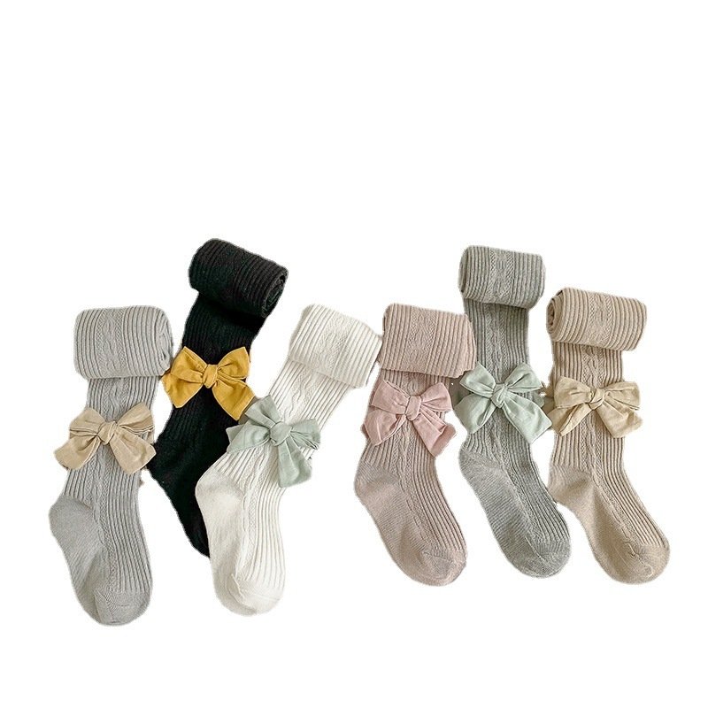 Kids Toddler Girls Spring Autumn Fashion Casual Solid Color Bow Tight Basic Knitted Leggings One-Body Socks