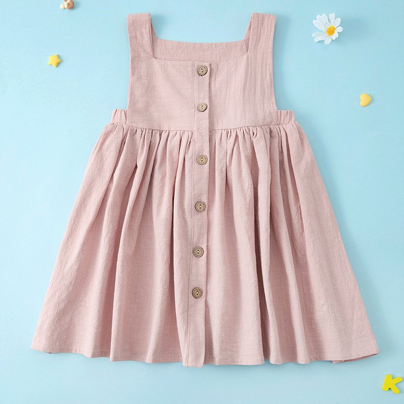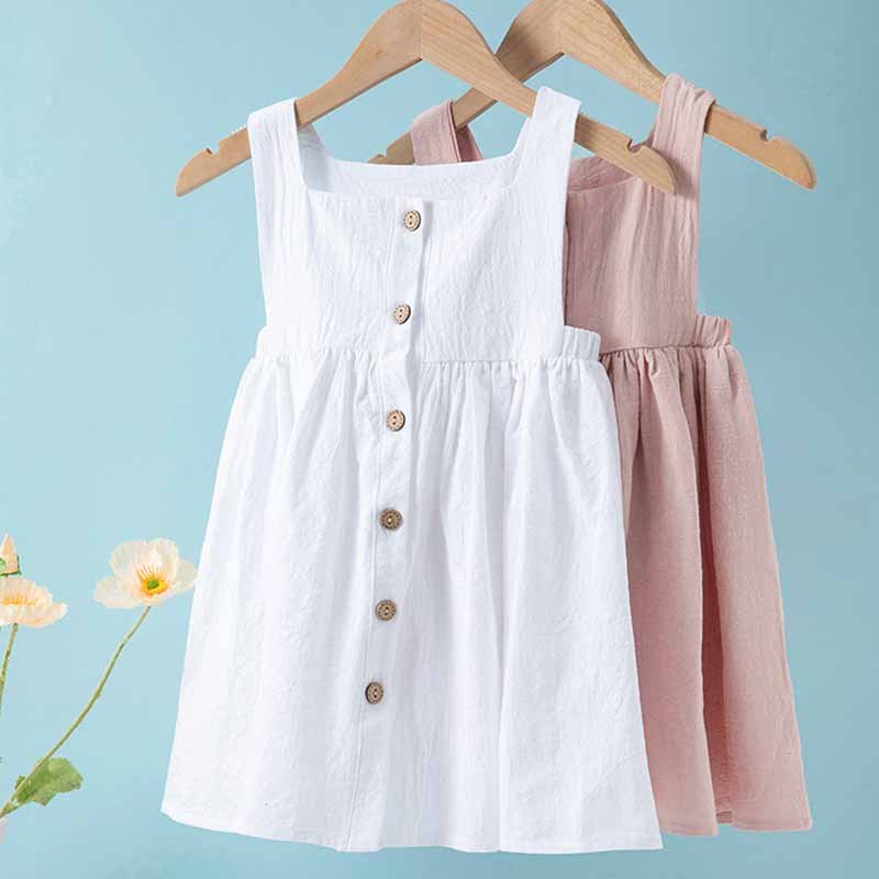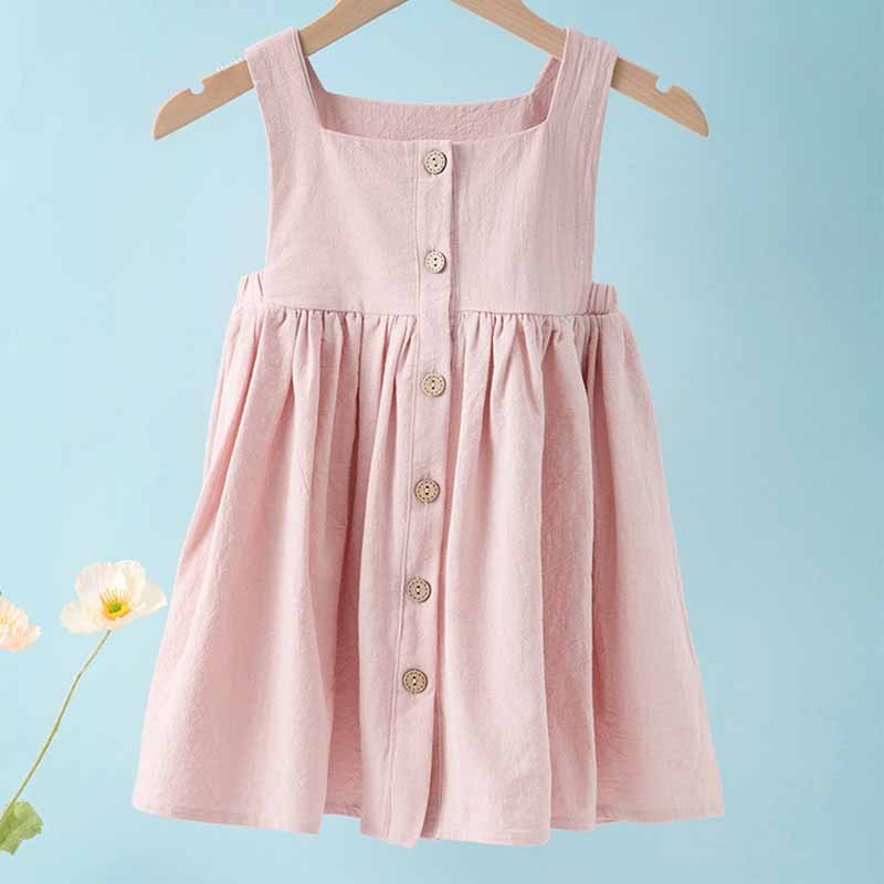Kids Toddler Girls Summer Casual Cute Basic Solid Color Sleeveless Square Neck Strap Dress