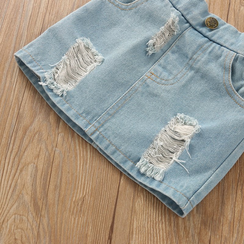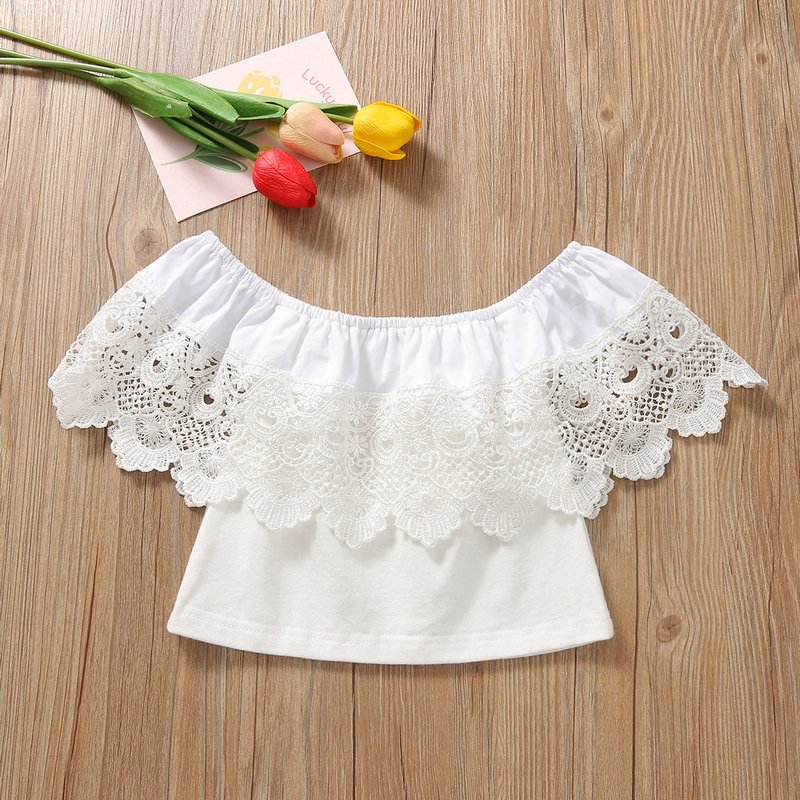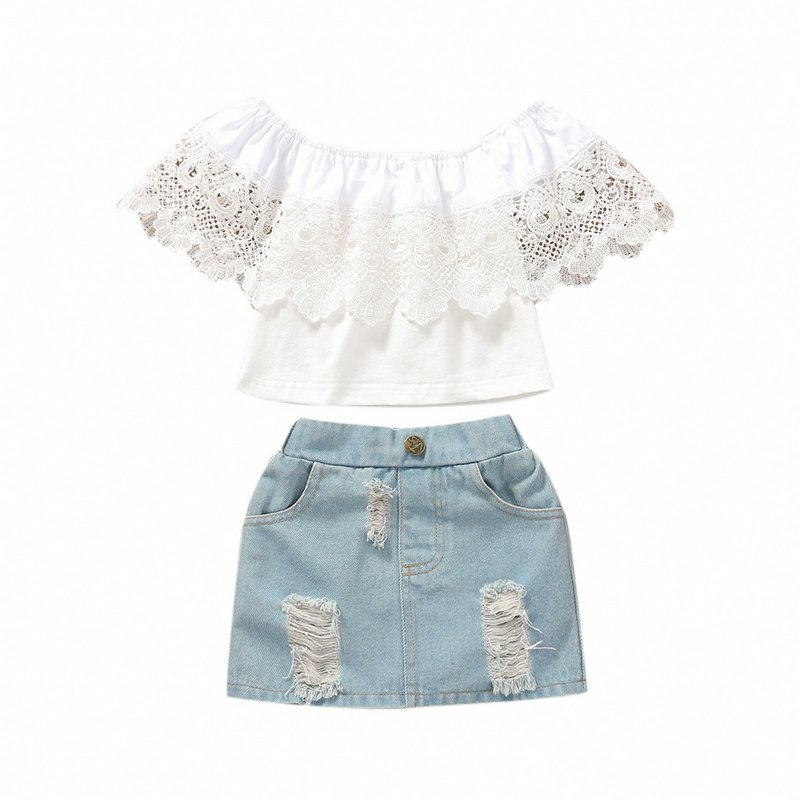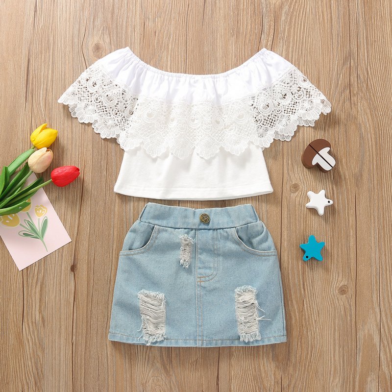 Kids Toddler Girls Summer Casual Cute Off Shoulder Lace Top Denim Skirt Set