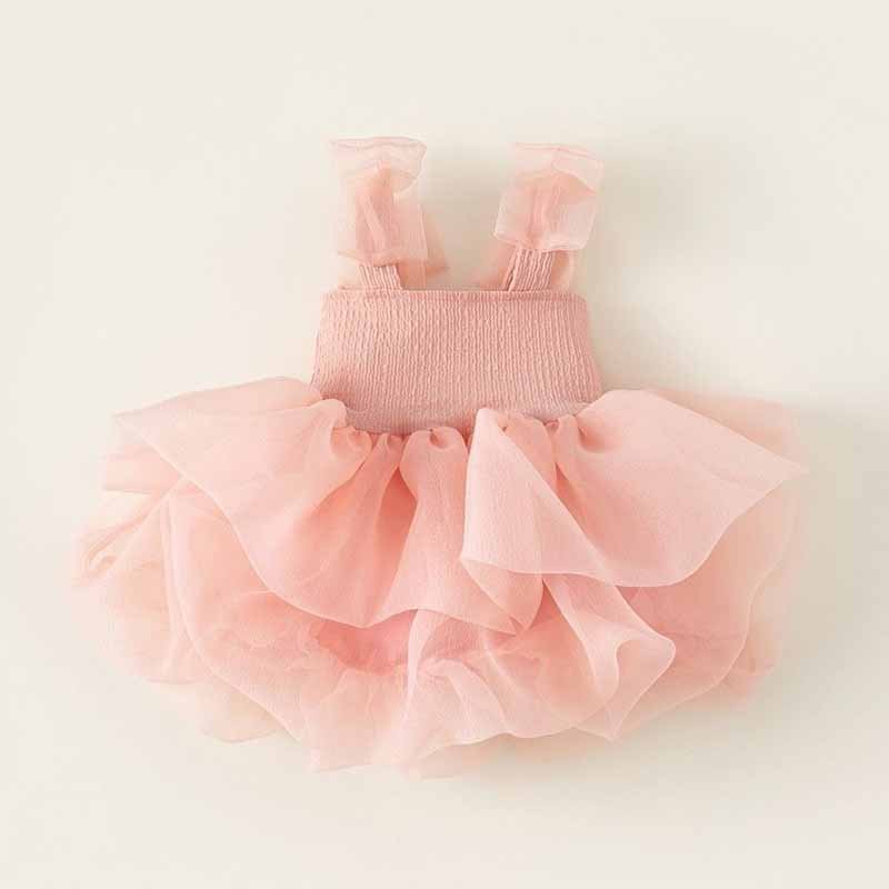 Kids Toddler Girls Summer Casual Cute Solid Color Mesh Strap Dress