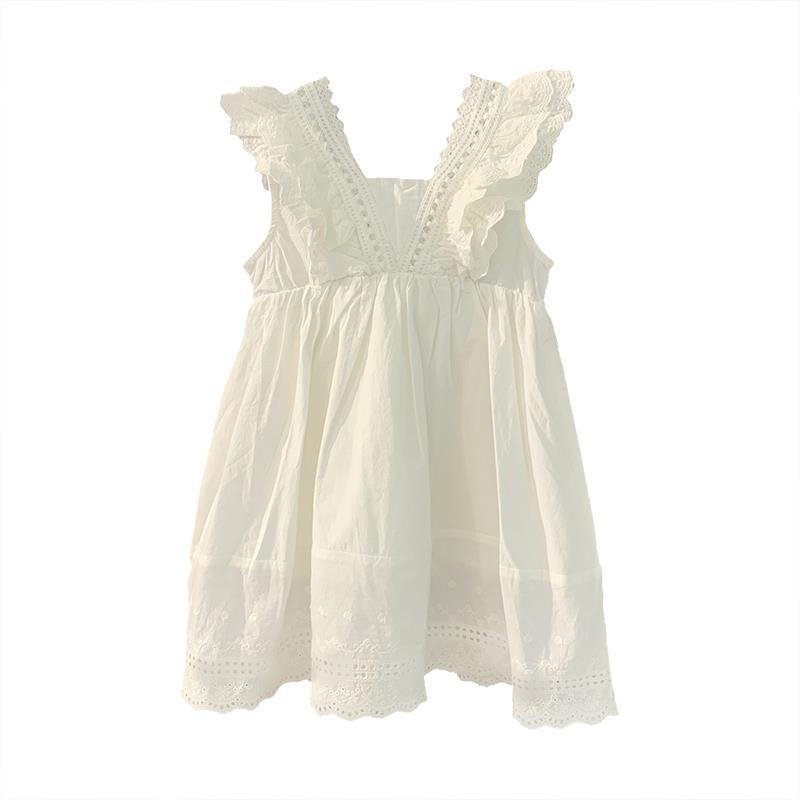 Kids Toddler Girls Summer Cute Solid Color Lace Thin V Neck Princess Dress