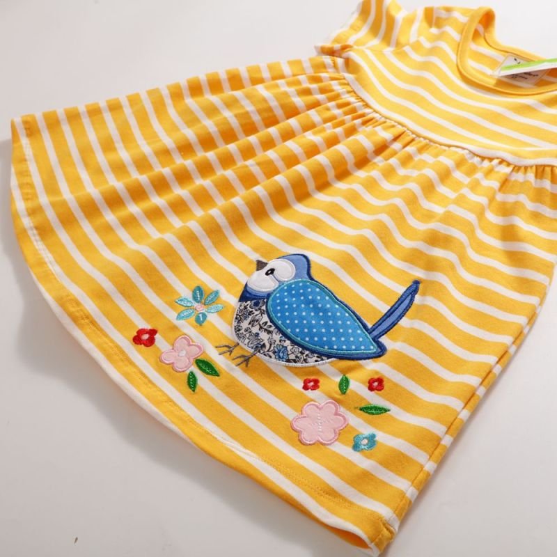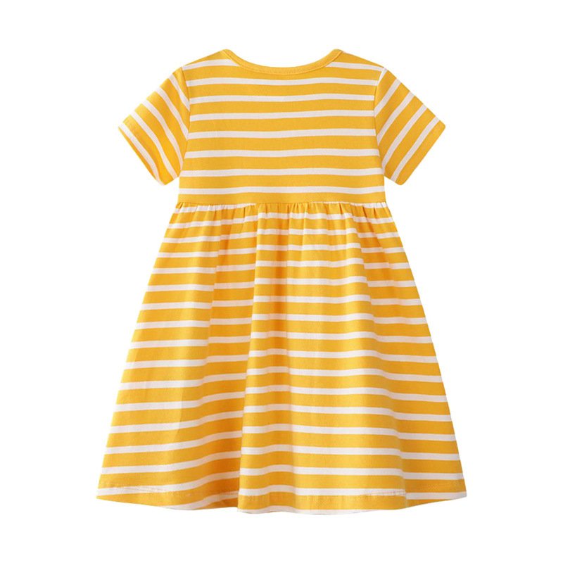 Kids Toddler Girls Summer Cute Striped Animal Embroidered Dress