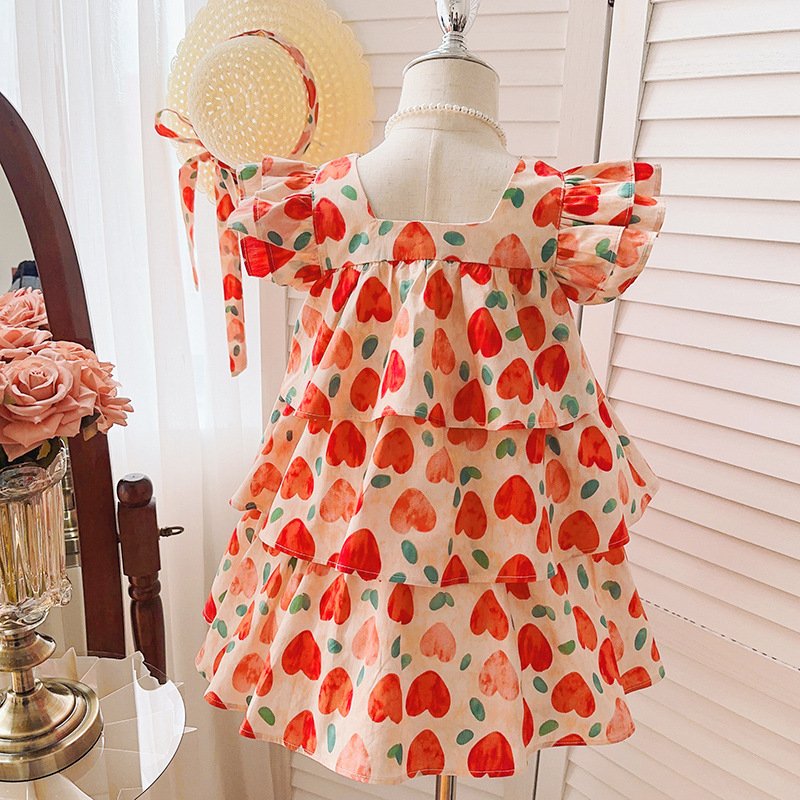 Kids Toddler Girls Summer Sweet Cute Heart Print Short Sleeve Dress