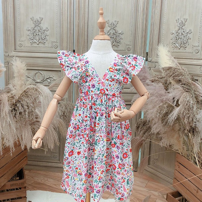 Kids Toddler Girls Summer Tiny Flower V-Neck Sweet Ruffle Dress
