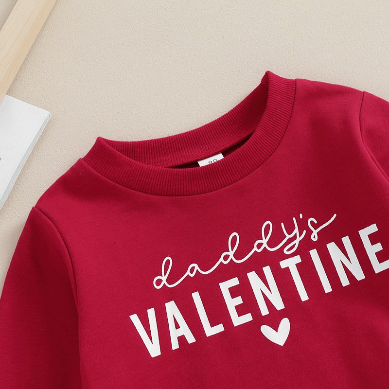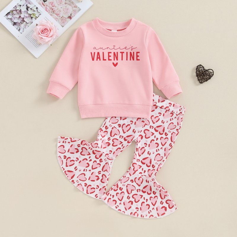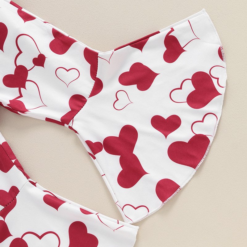 Kids Toddler Girls Valentine Cute Heart Print Long Sleeve Round Neck Sweatshirts Flare Trousers Set