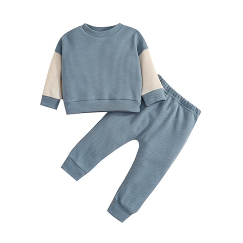 Kids Toddlers Girls Boys Pullover Stitching Long-Sleeved Sweatshirt And Pants 2pcs Set