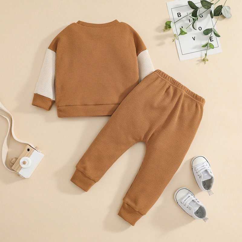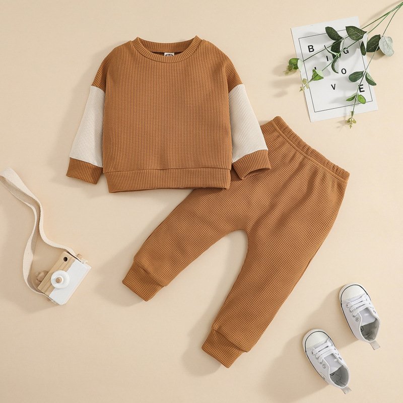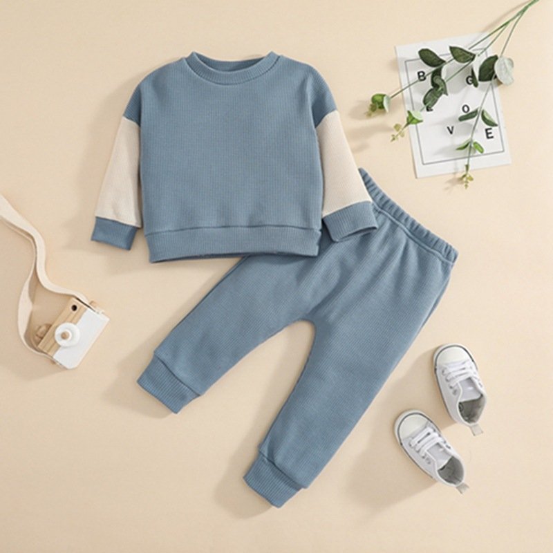 Kids Toddlers Girls Boys Pullover Stitching Long-Sleeved Sweatshirt And Pants 2pcs Set