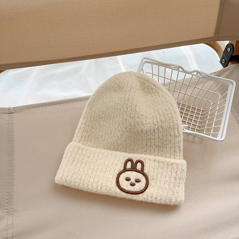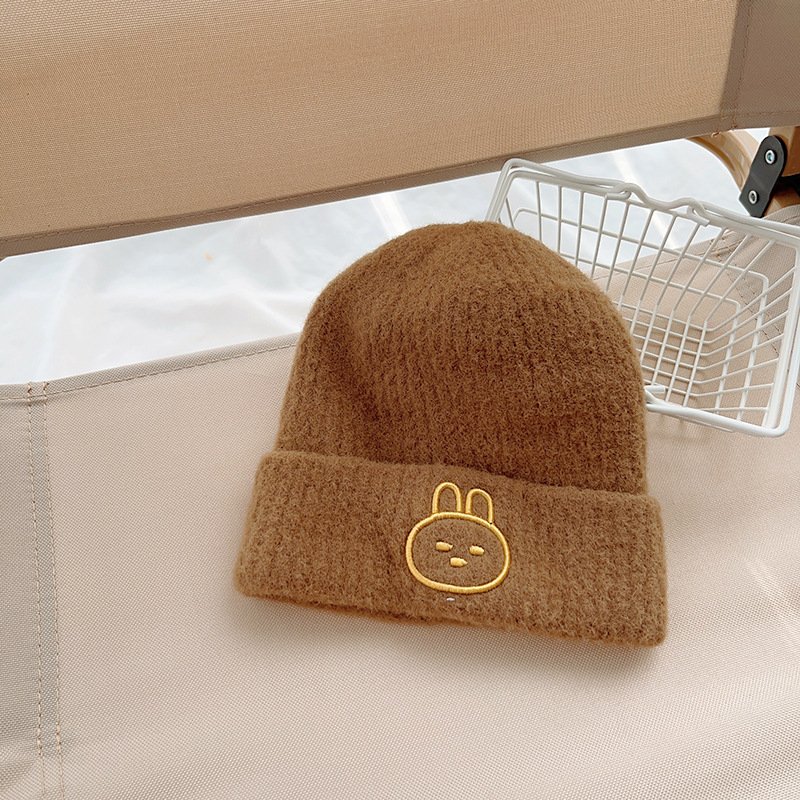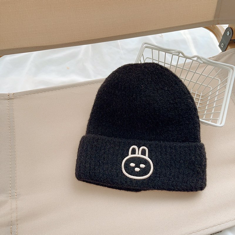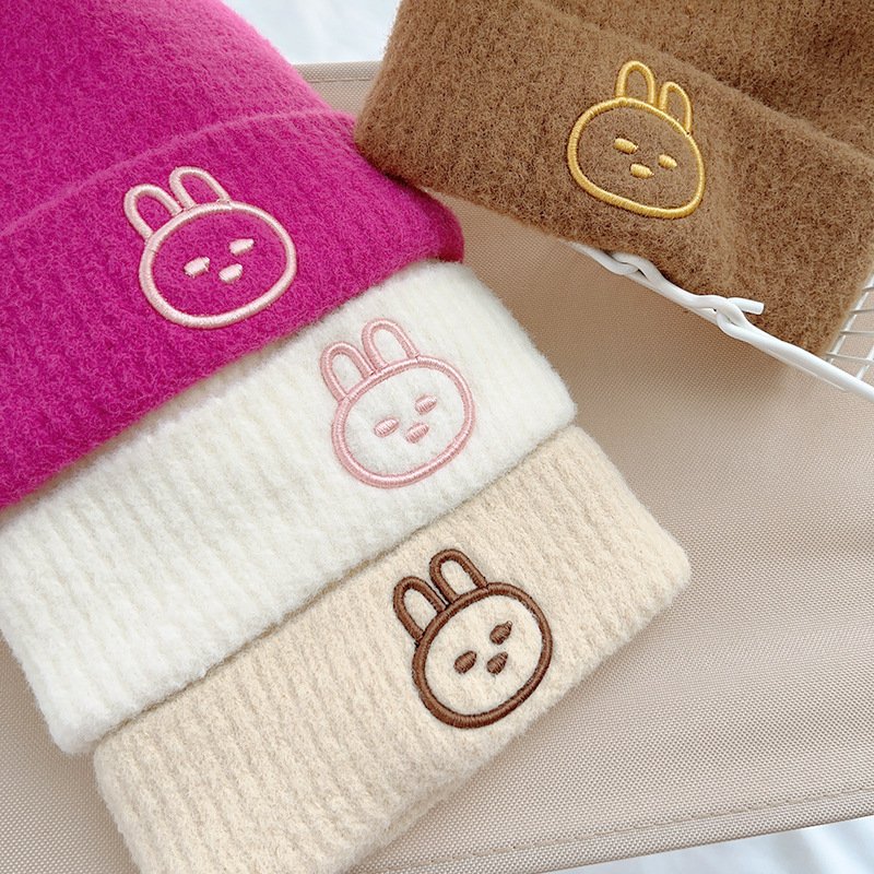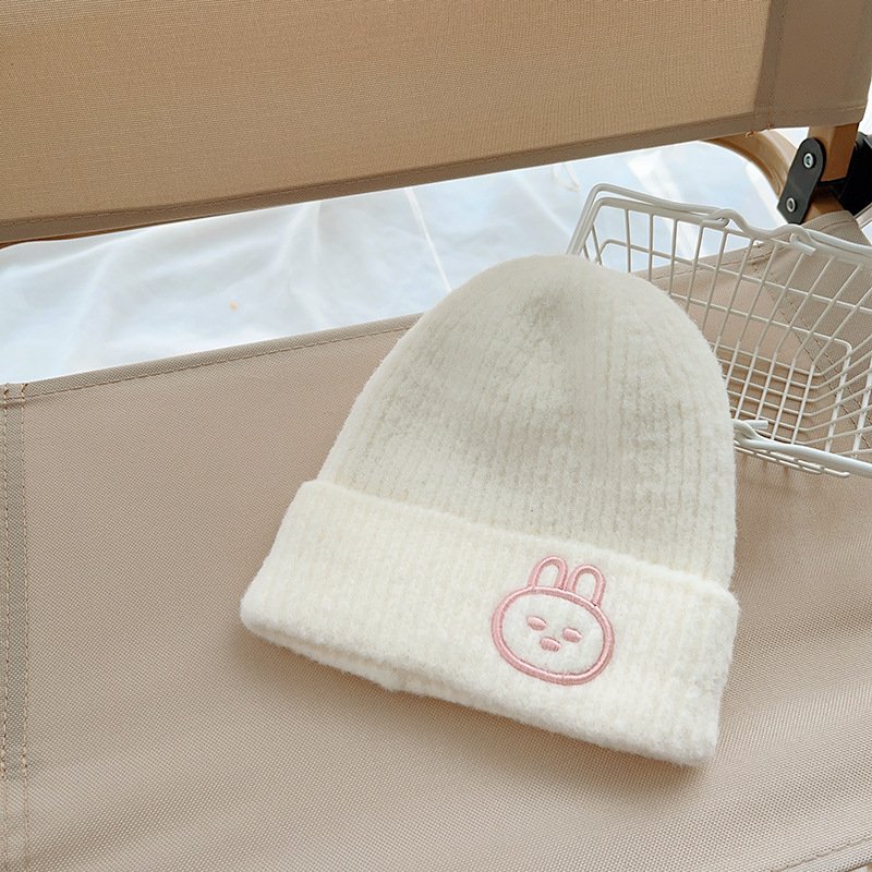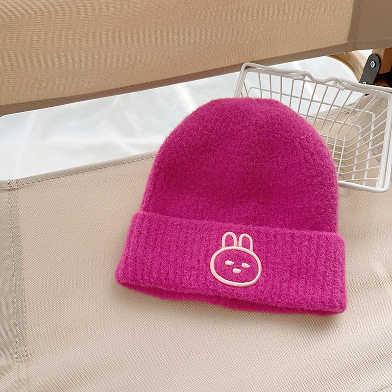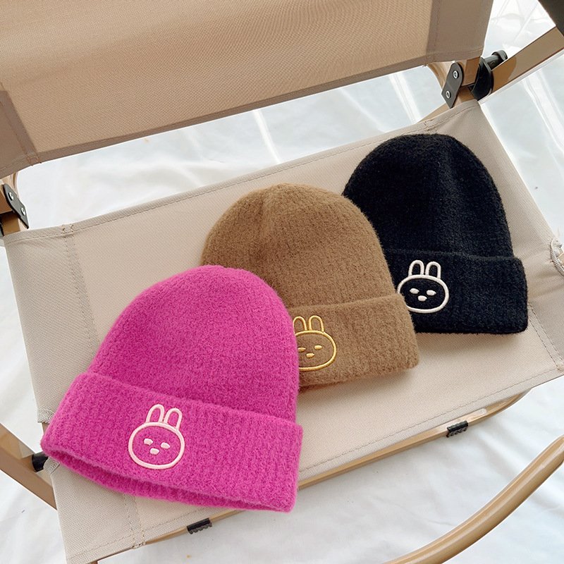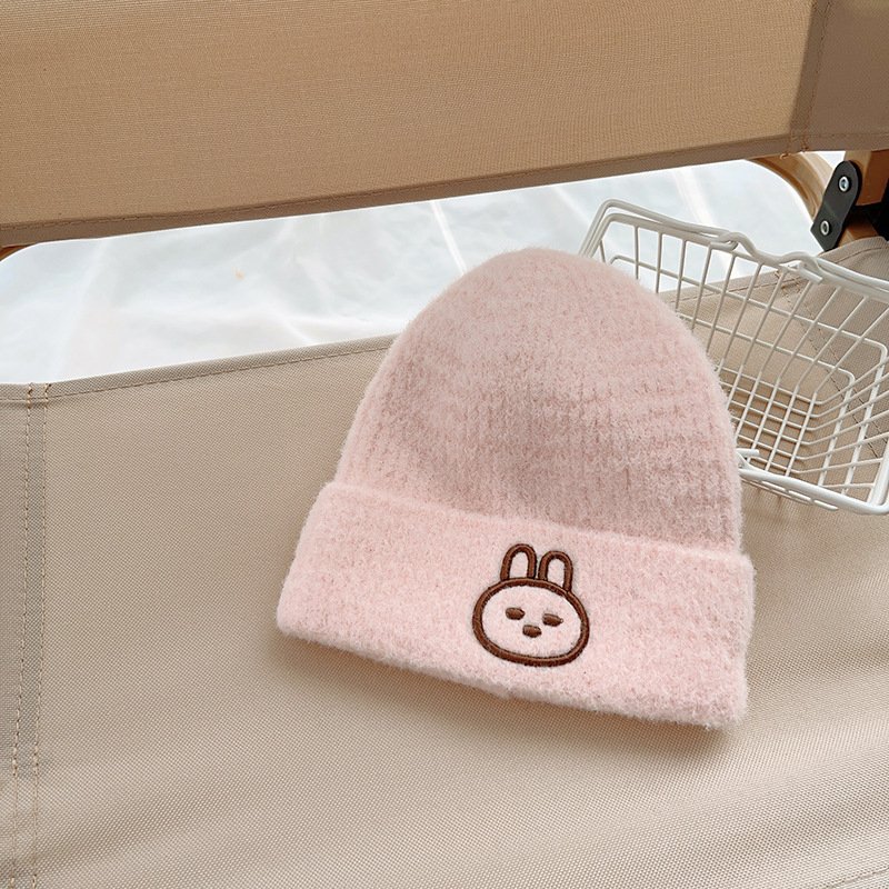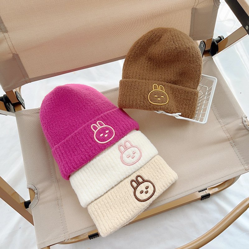 Kids Unisex Autumn Winter Casual Cute Cartoon Rabbit Embroidery Solid Color Knitwear Hat