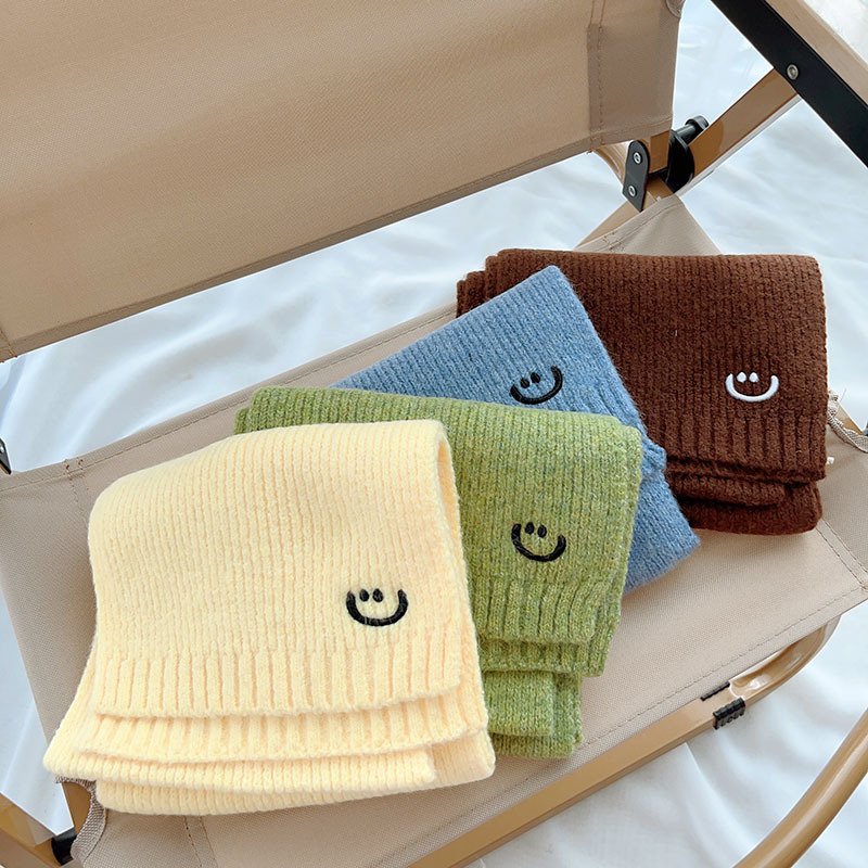 Kids Unisex Autumn Winter Casual Cute Smiley Solid Color Knitwear Scarf