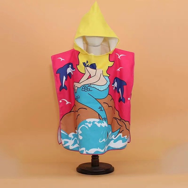 Kids Unisex Casual Cute Cartoon Print Beach Hooded Bath Towel Cape