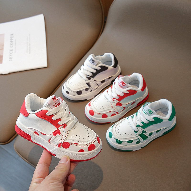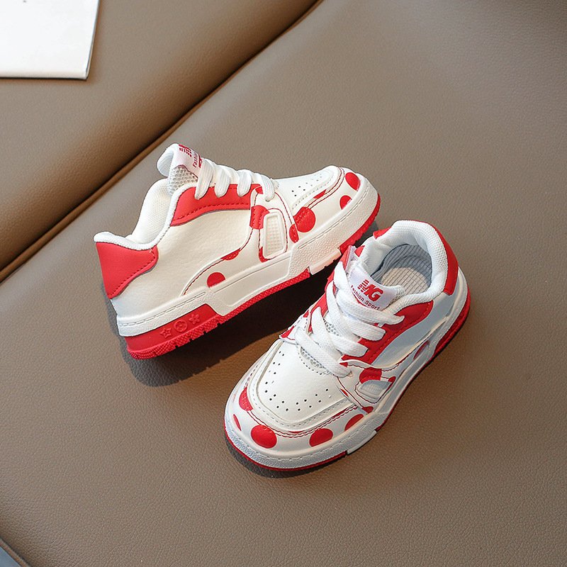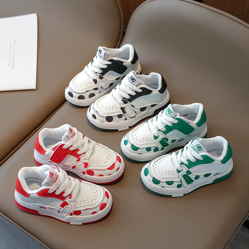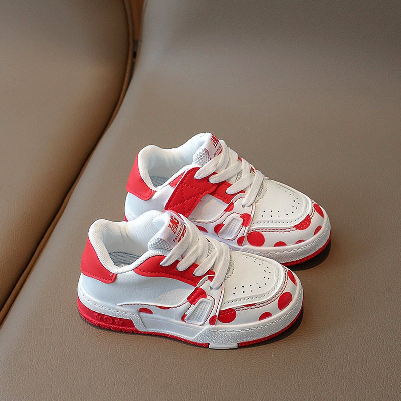 Kids Unisex Casual Cute Sport Polka Dot Round-Toe Lace-Up Sneakers