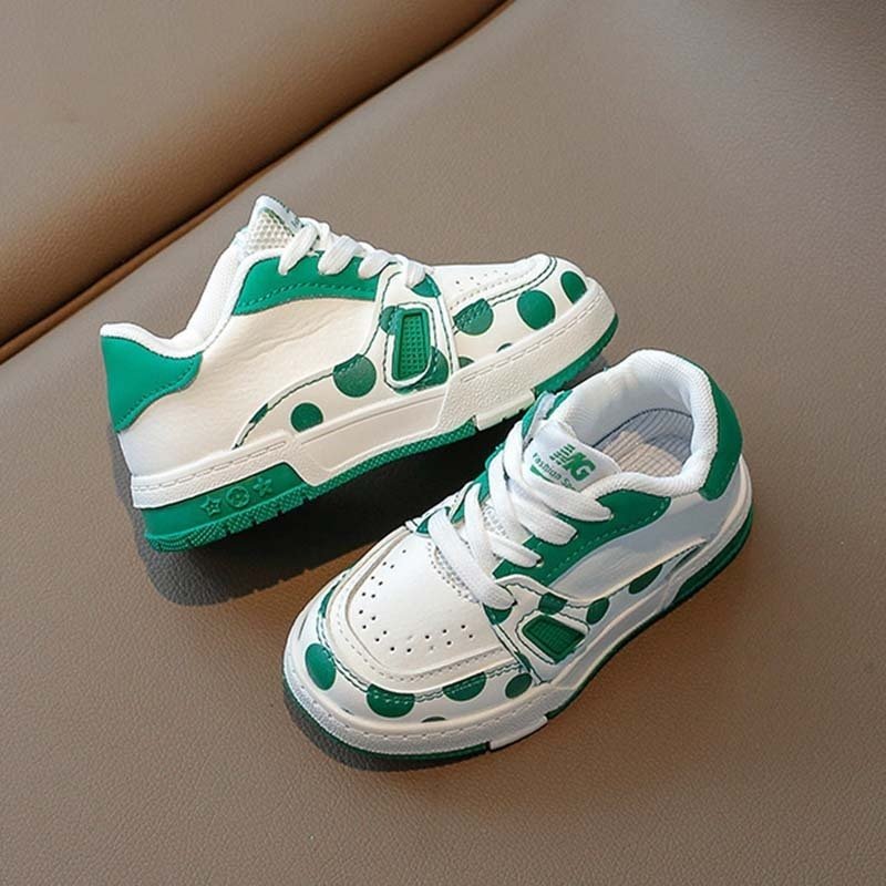 Kids Unisex Casual Cute Sport Polka Dot Round-Toe Lace-Up Sneakers