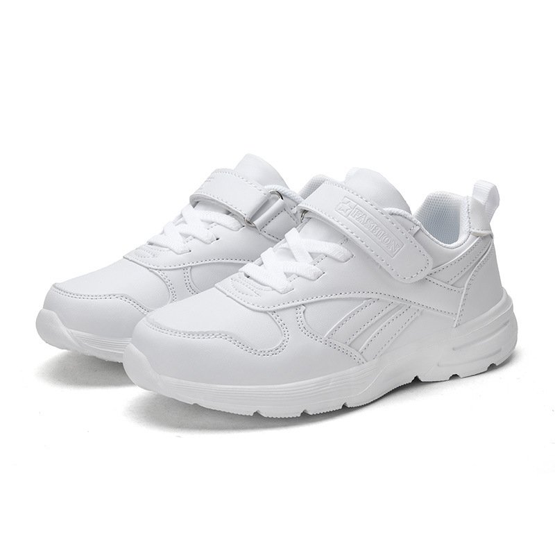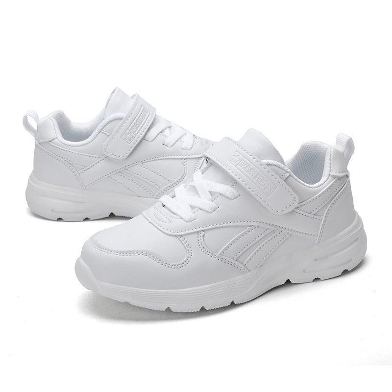 Kids Unisex Casual Solid Color Breathable Leather Preppy Lace-Up Velcro Sneakers