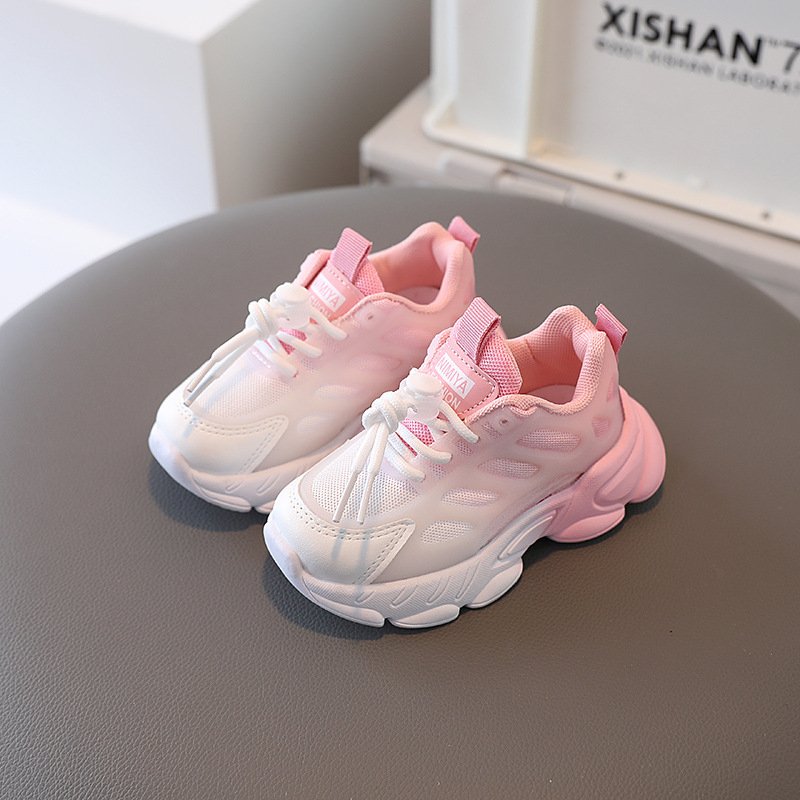 Kids Unisex Casual Sports Gradient Color Mesh Lace-Up Thick-Soled Sneakers