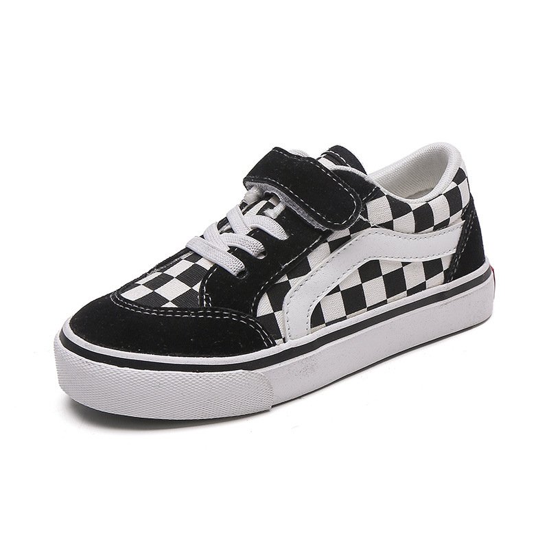 Kids Unisex Fashion Casual Basic Color Block Plaid Velcro Lace-Up Low Top Canvas Shoes