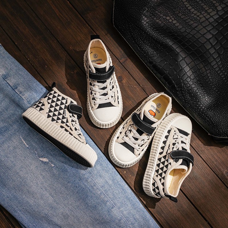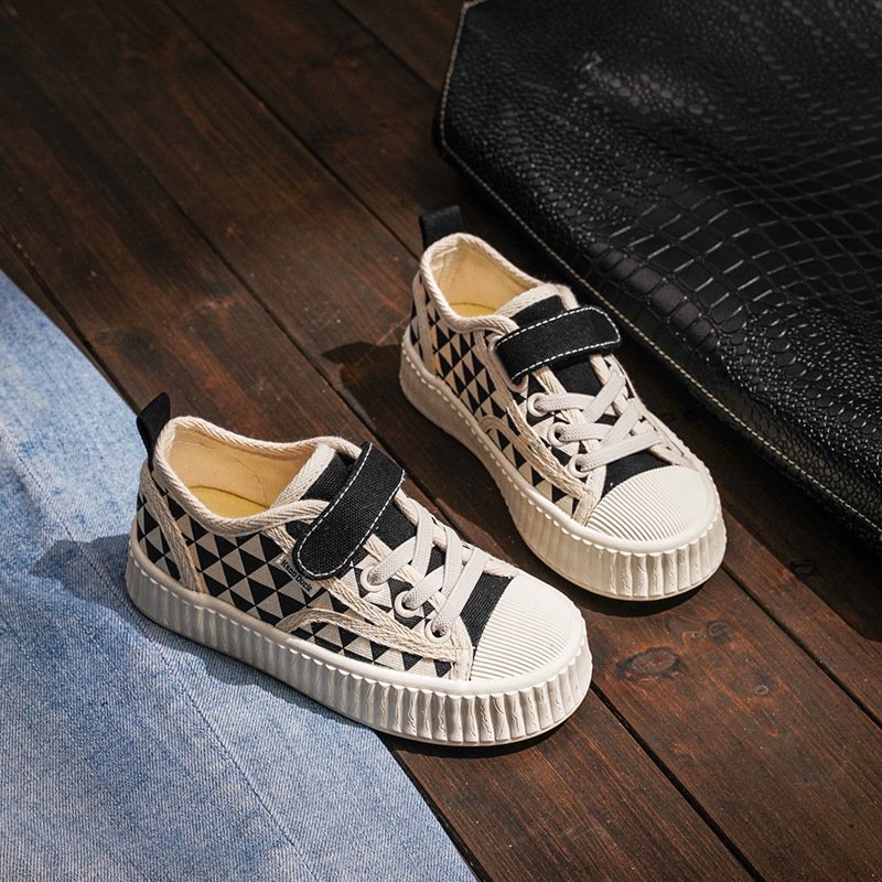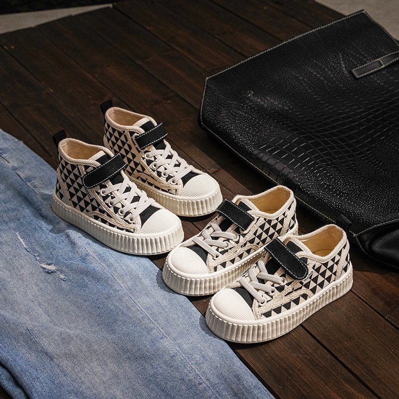 Kids Unisex Fashion Casual Basic Color Block Plaid Velcro Lace-Up Low Top High Top Canvas Shoes