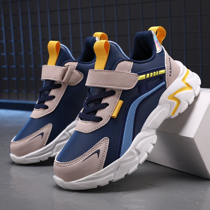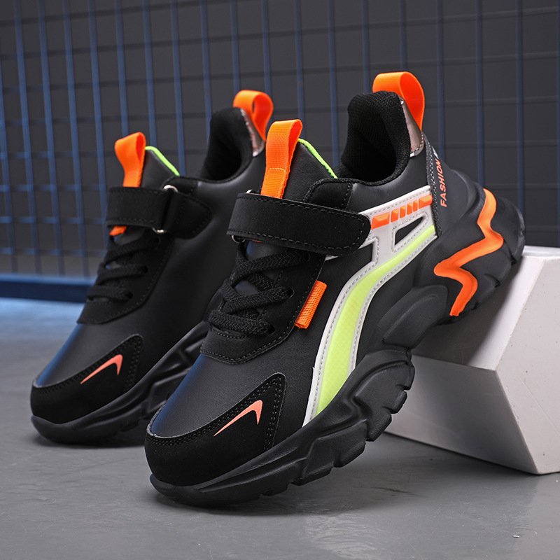 Kids Unisex Fashion Casual Color Matching Breathable Letter Leather Preppy Lace-Up Velcro Sneakers