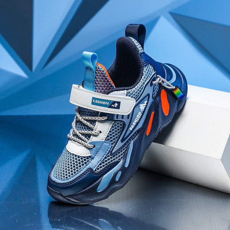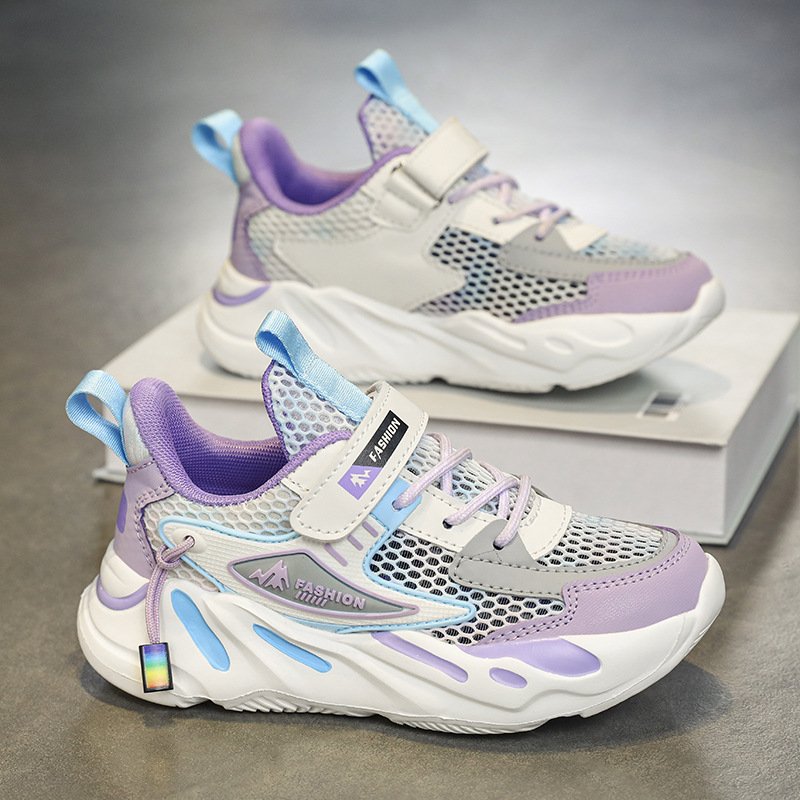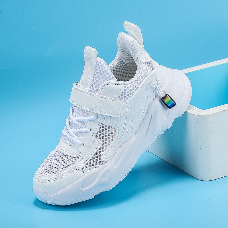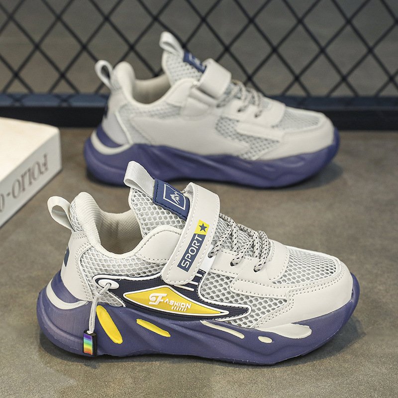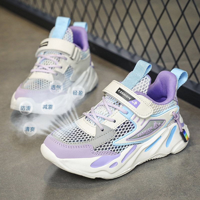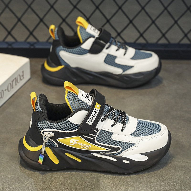 Kids Unisex Fashion Casual Color Matching Breathable Letter Mesh Preppy Lace-Up Velcro Sneakers