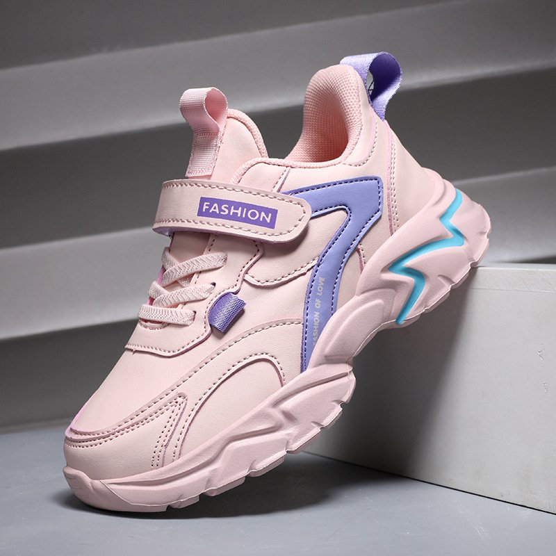 Kids Unisex Fashion Casual Color Matching Breathable Mesh Leather Preppy Lace-Up Velcro Sneakers