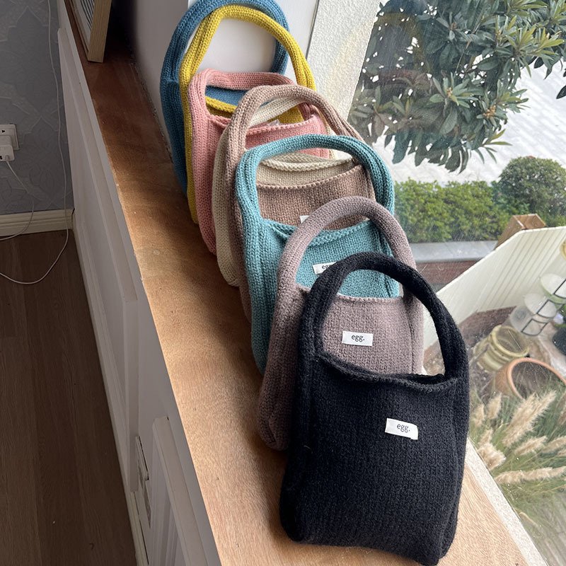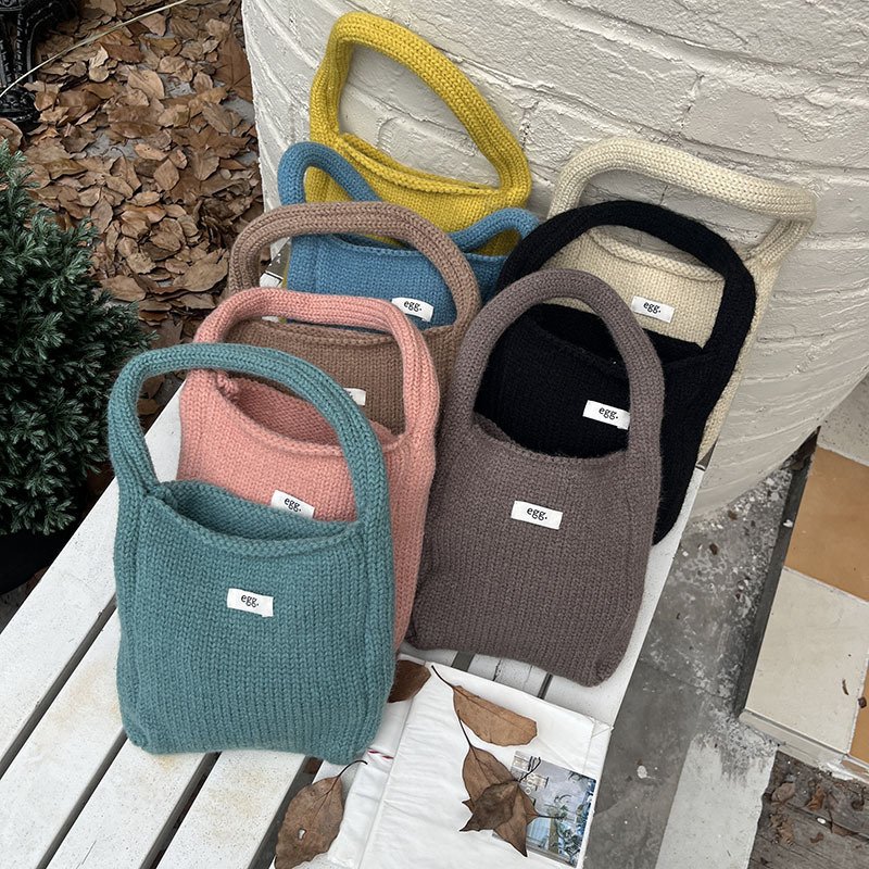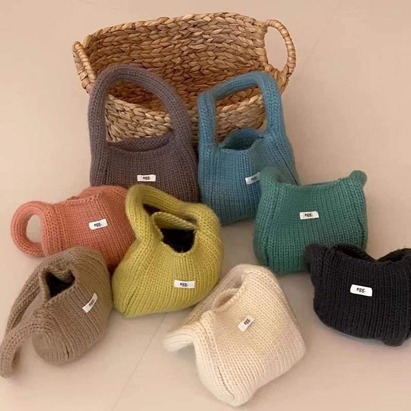Kids Unisex Fashion Casual Solid Color Knitted Shoulder Bags