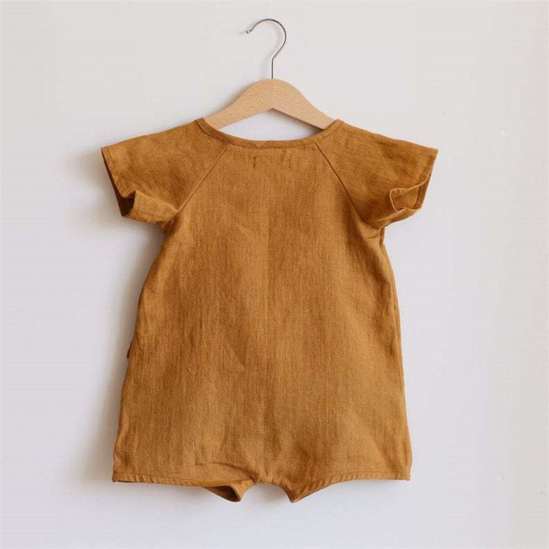 Linen Cotton One Piece Boys Girls Romper Summer Short Sleeve Kids Jumpsuit
