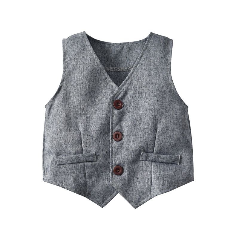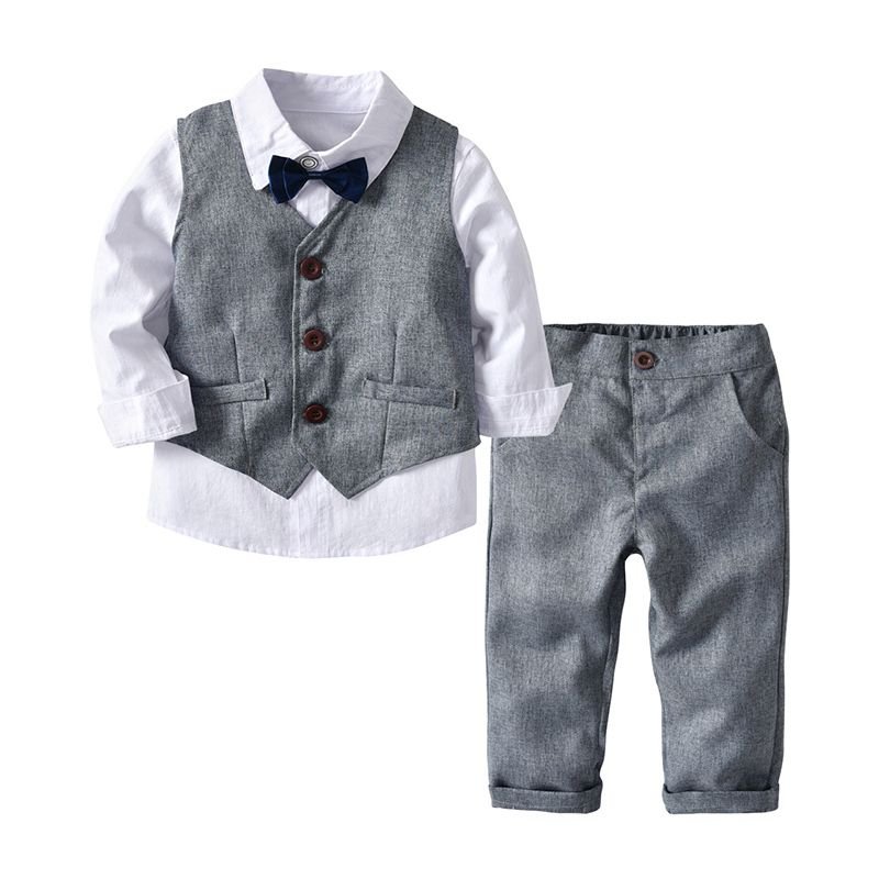 Little Gentlemen Boys Cotton Gray Vests And White Shirts And Pants Set