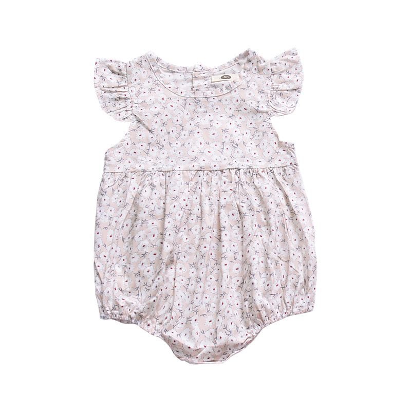 Little Girls Cotton Floral Printed Ruffle Sleeves Bodysuit