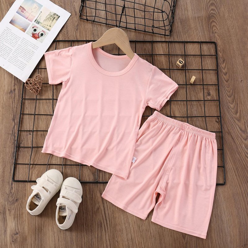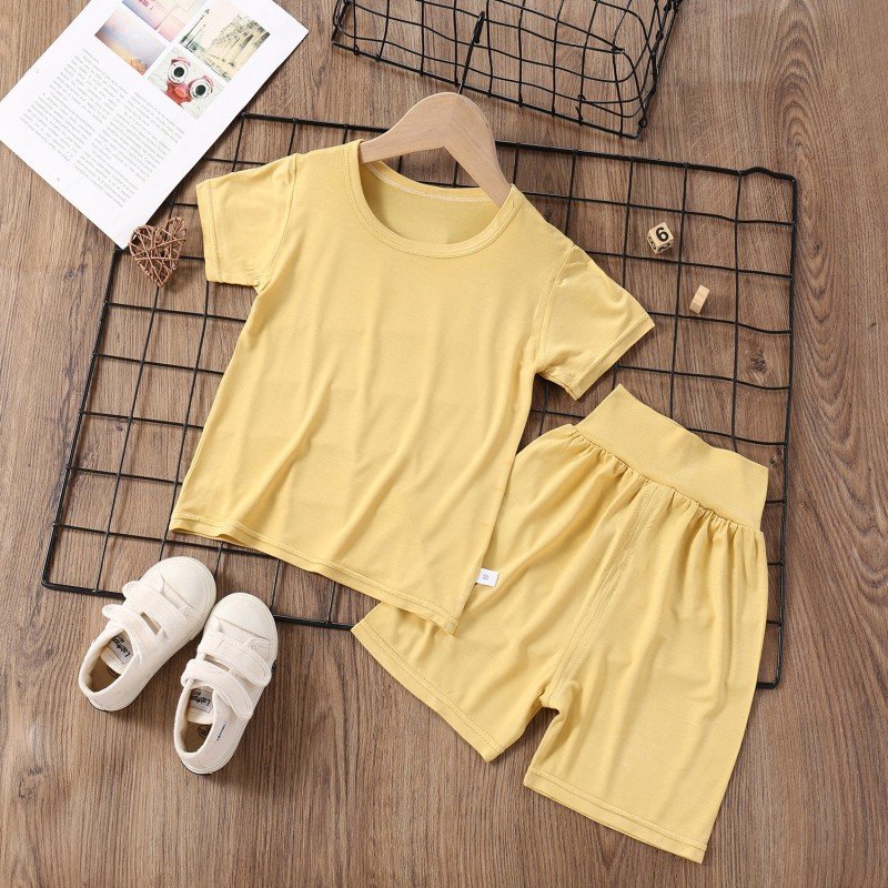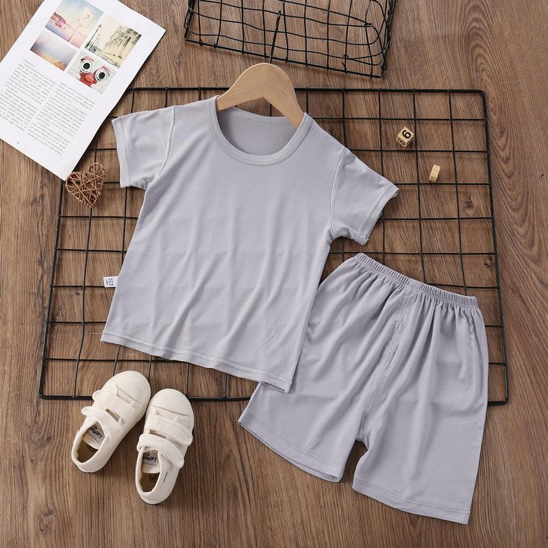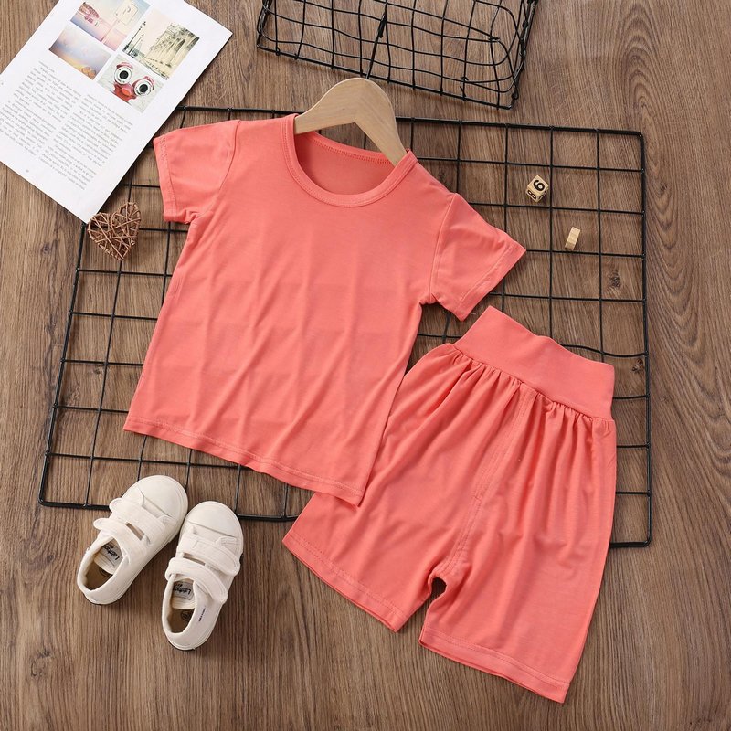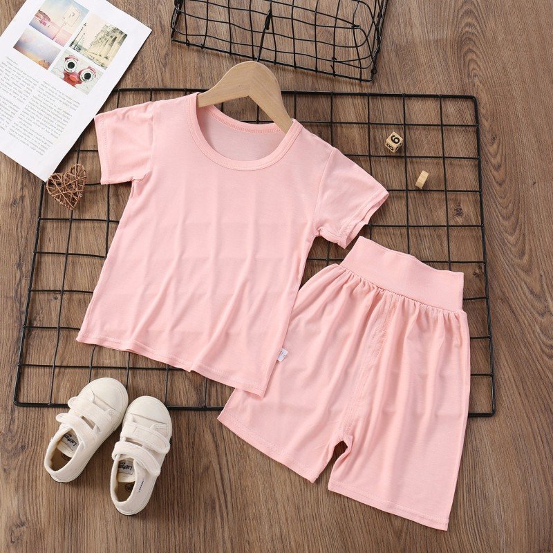 Modal Kids Soft Home Pajamas Solid Color Baby Boys Girls 2pcs Set