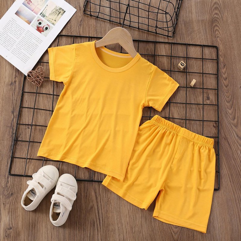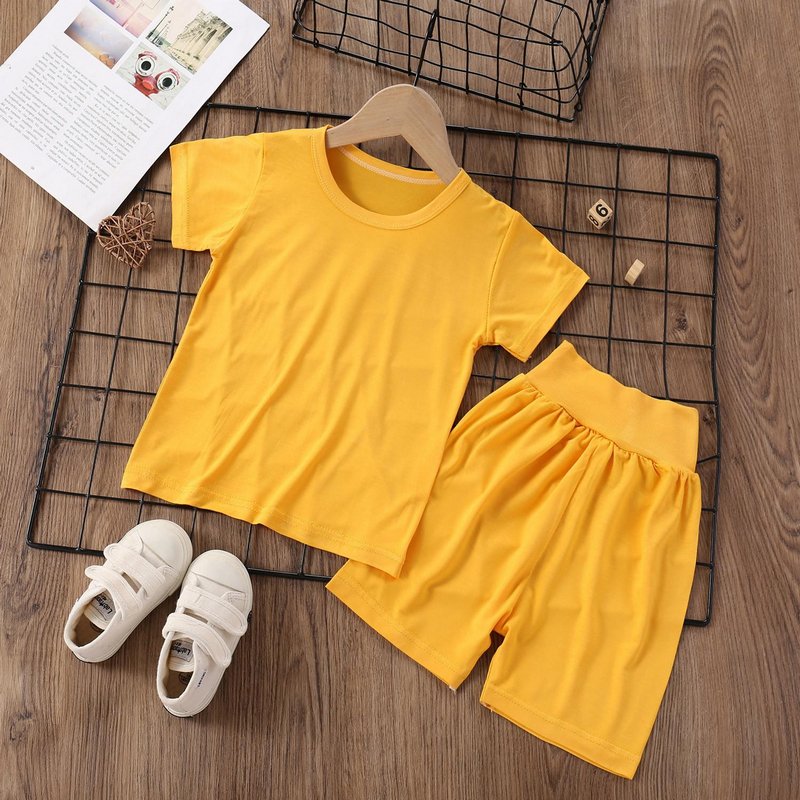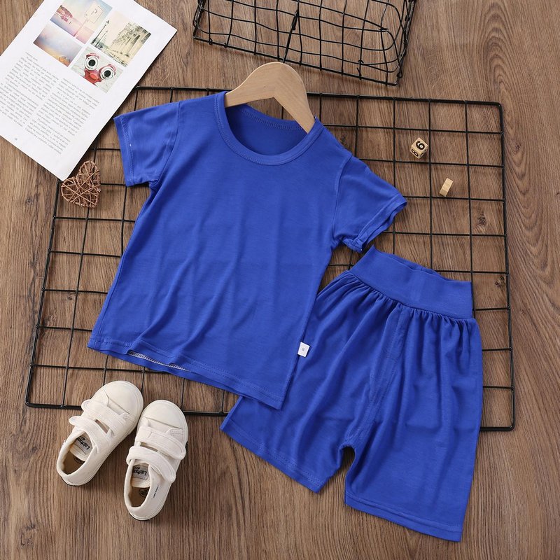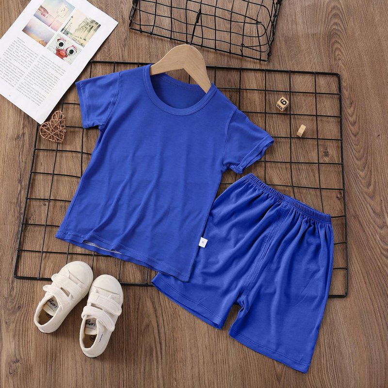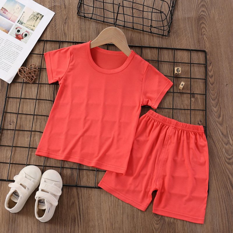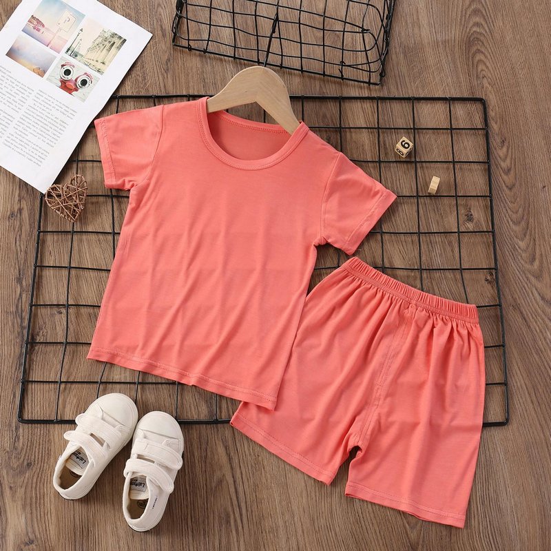 Modal Kids Soft Home Pajamas Solid Color Baby Boys Girls 2pcs Set