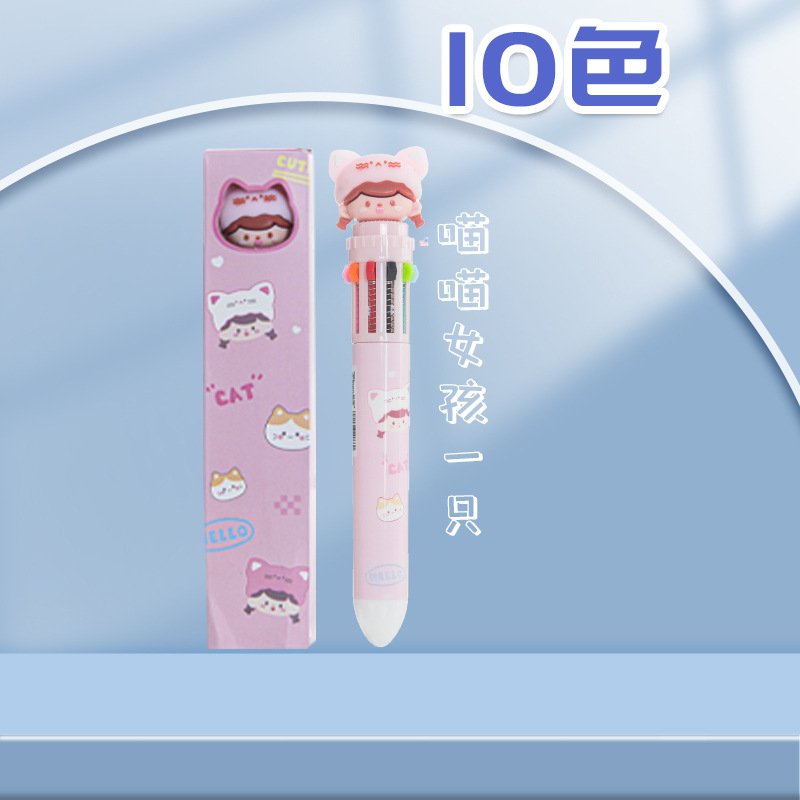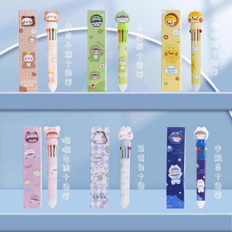 Multicolor Cute Cartoon Multifunctional Ten Color Ballpoint Pen Student Stationery