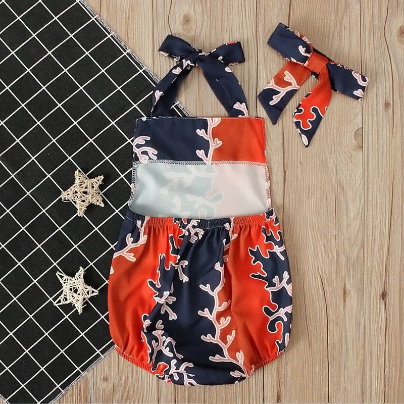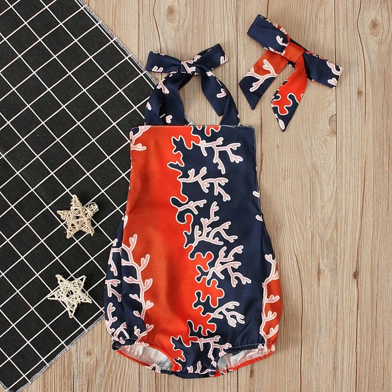 New Arrival Infant Toddler Girl Print Cute Bodysuit With Headband