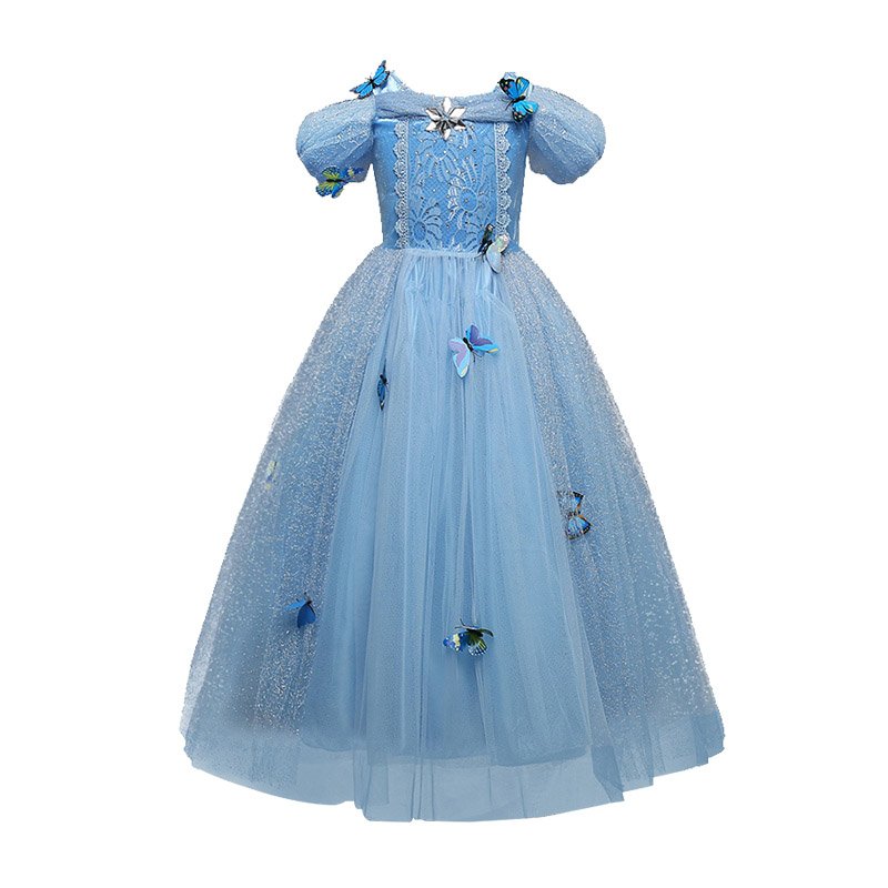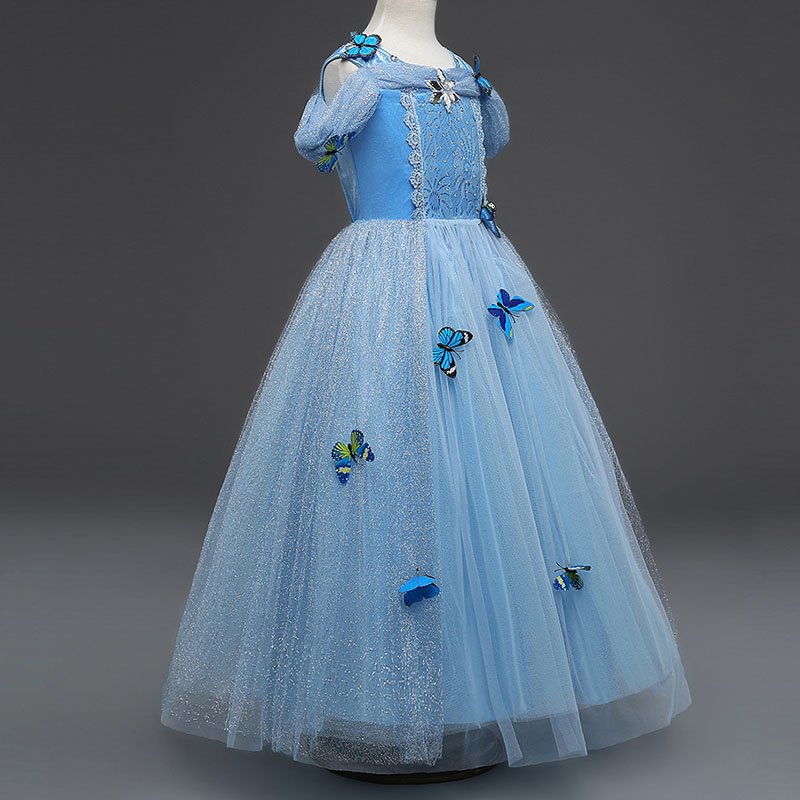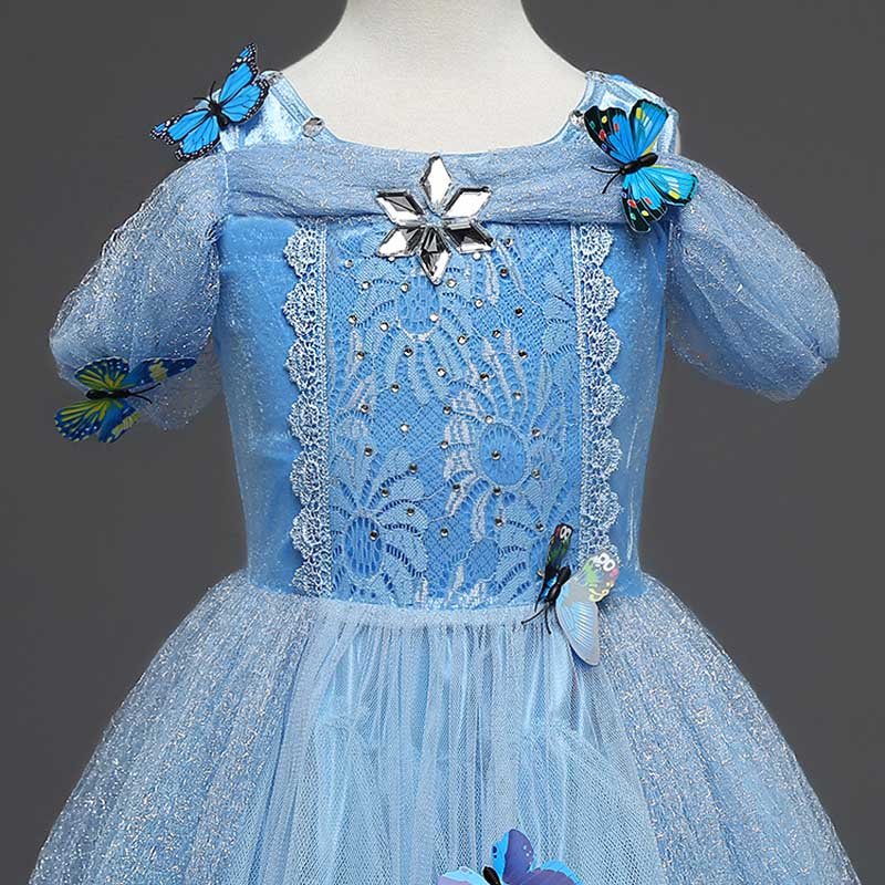 New Arrived Short Sleeve Tulle Butterfly Long Frozen Fancy Dress Costumes Design Party Dress For Kids Girl