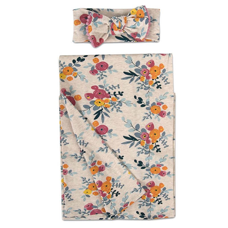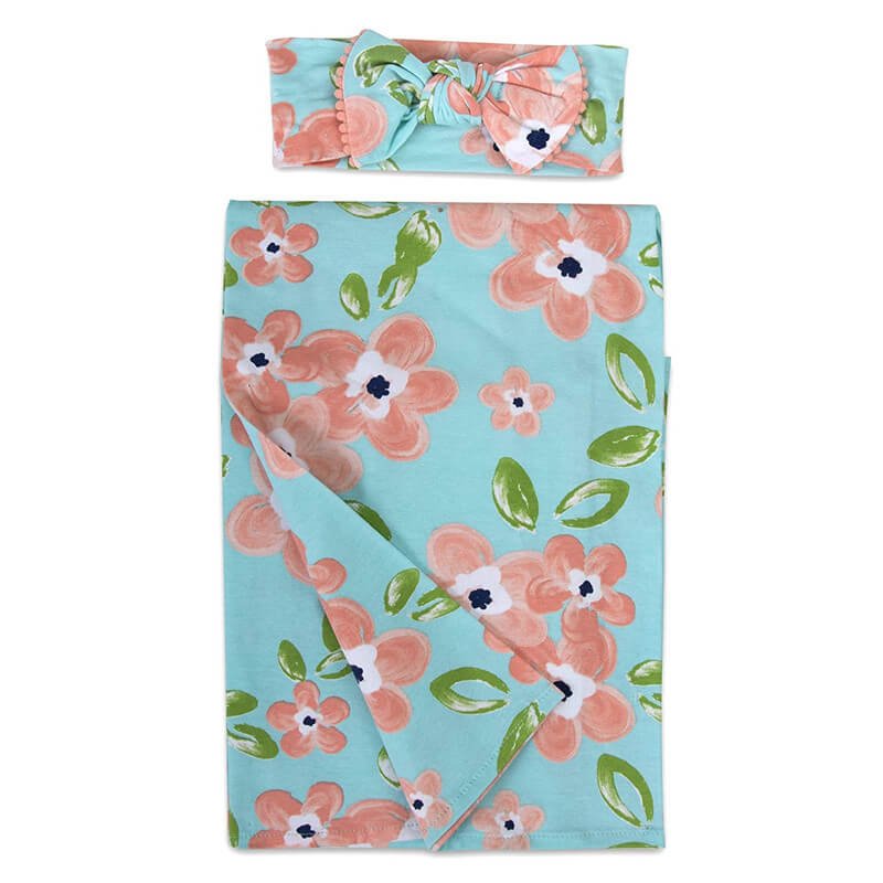Newborn Cartoon Print Soft Cotton Swaddle Wrap With Hat